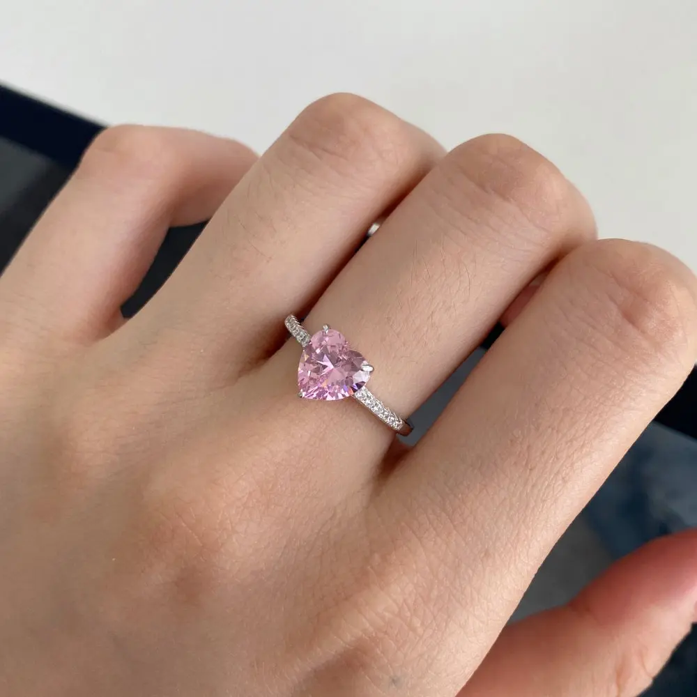 Be the center of attention with this stunning Dulce Ring! It features a cute pink heart Zirconia set in a 925-sterling silver band, adding a hint of feminine flair to your look. Perfect for making a statement and turning heads!