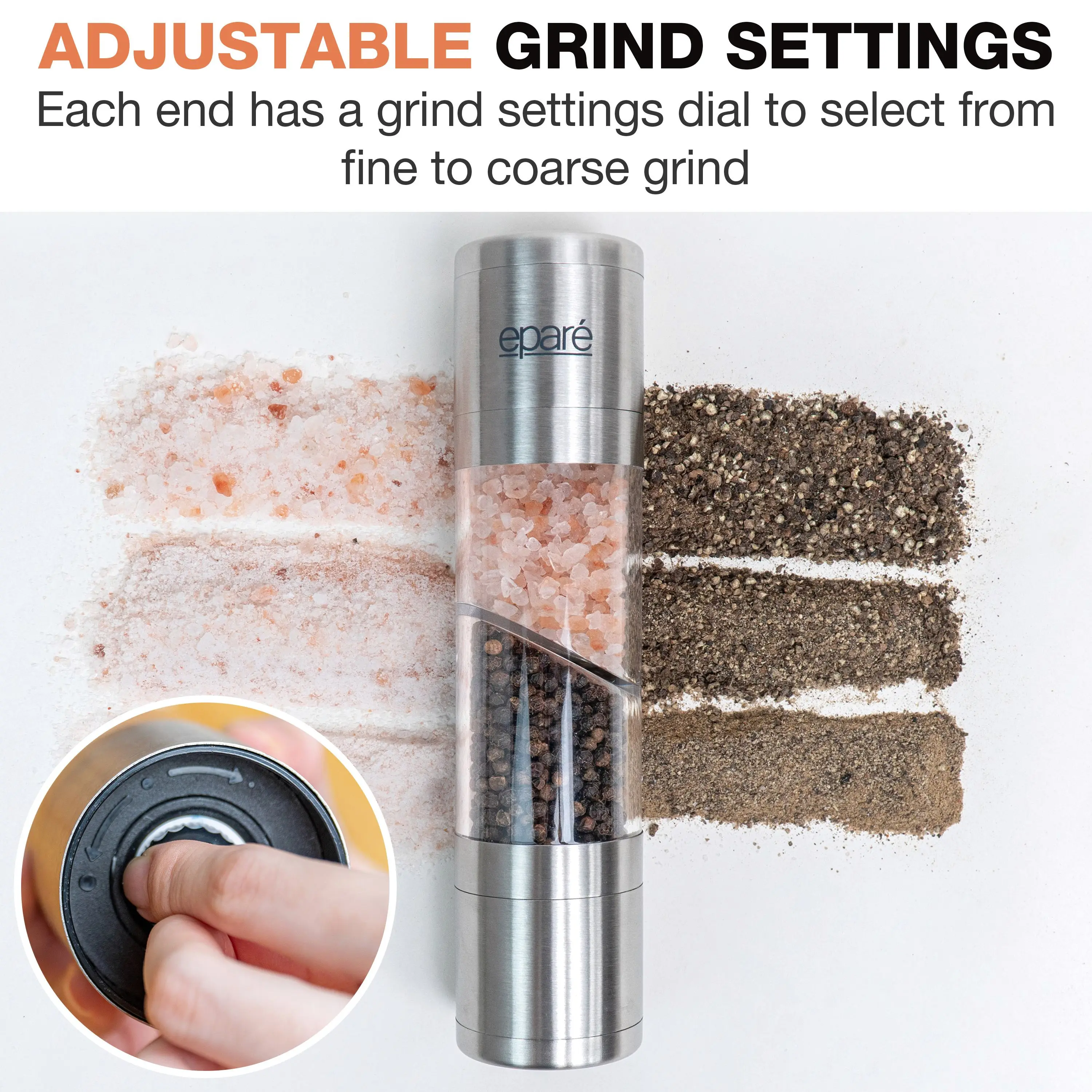 Eparé Dual Salt and Pepper Grinder Combo - 2 in 1 Refillable Peppermill Grinders