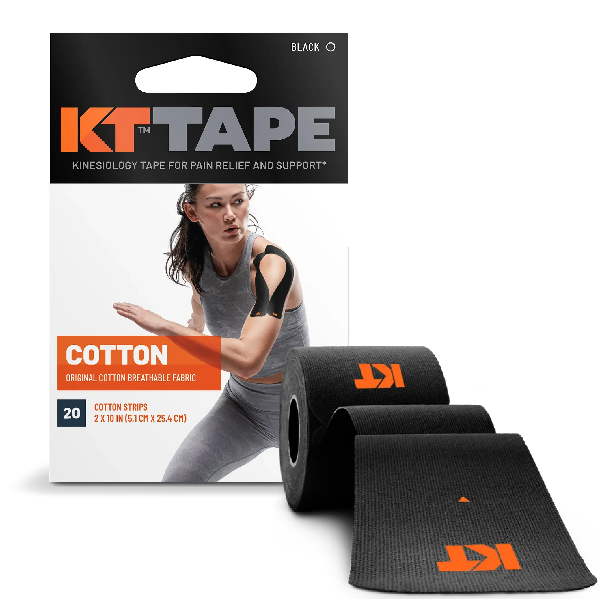 ·1 box KT Tape Cotton Black – with 20 precut strips