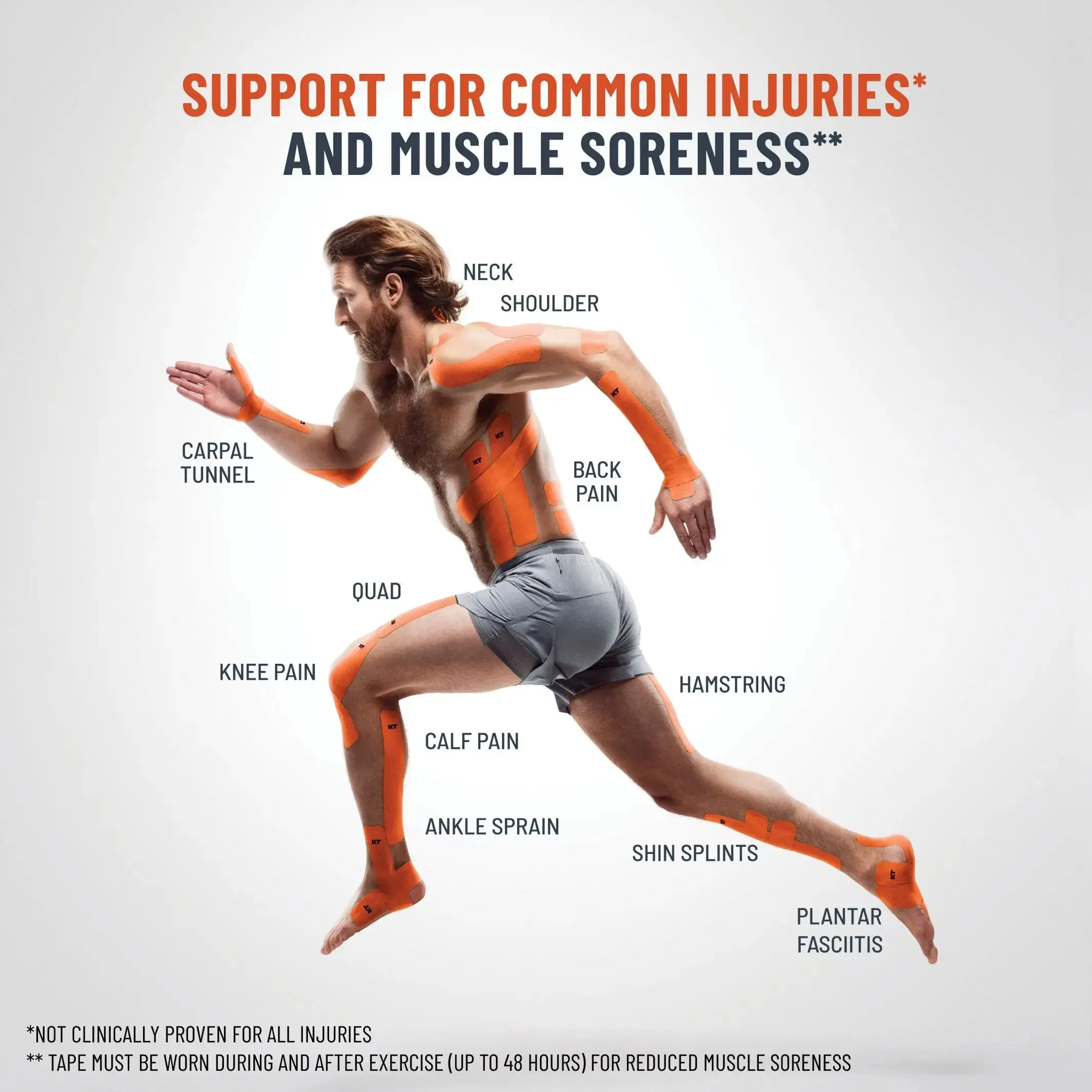 For a KT Tape that will support you through more strenuous exercise or activity, we recommend KT Tape Pro. Our best-selling tape is made from synthetic, latex-free material, remains in place for 4-7 days, and can stand up to hard workouts and long distance runs.