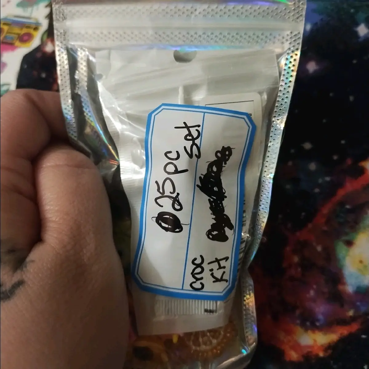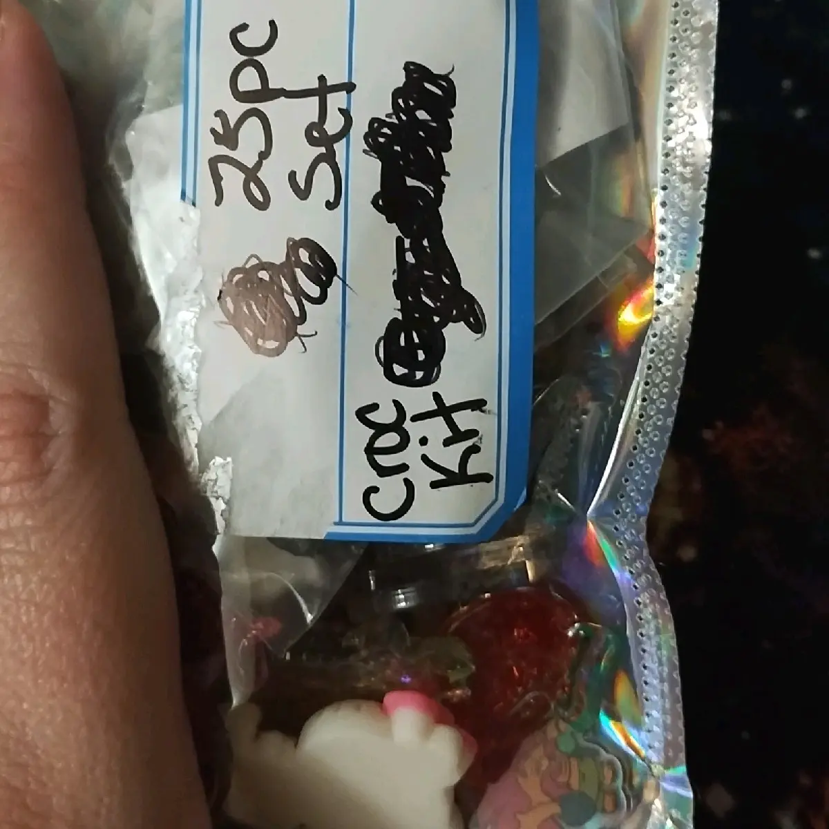 This peoduct is all you need to create ur own croc charms, This kit comes with 25-27 charms different kinds, a small thing of glue B 7000, and black and transparent croc backs. fun to make alone or wit family.