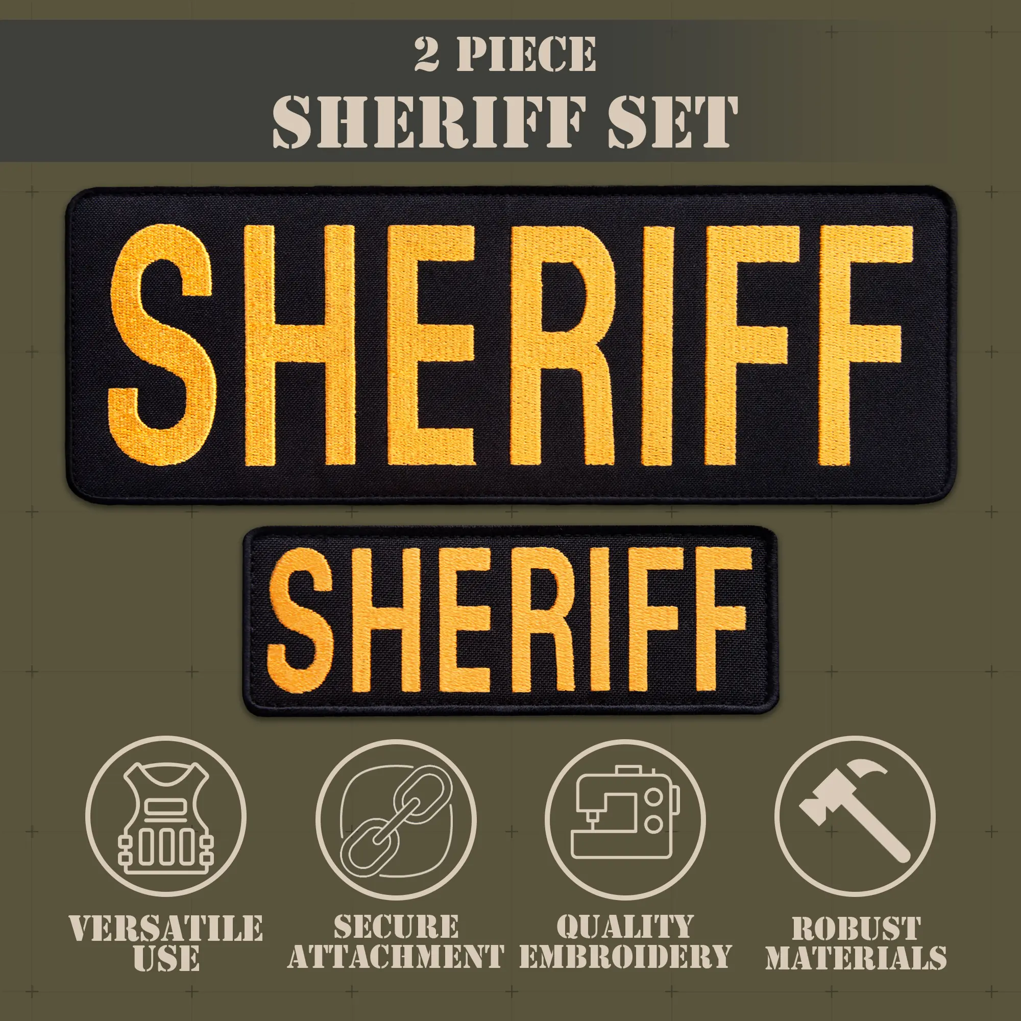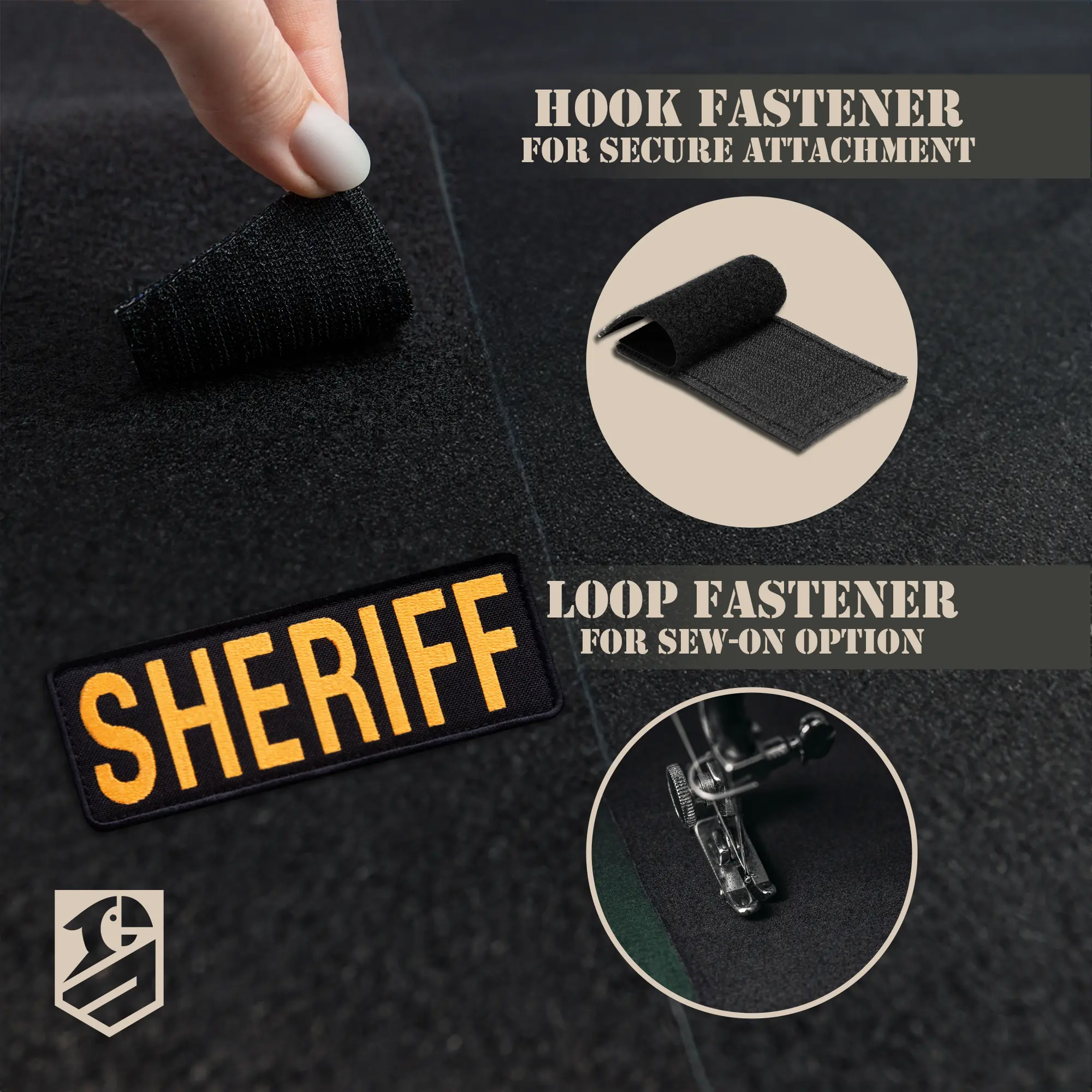 Bluyellow 2pcs Sheriff Patch Set – Embroidered Hook & Loop Costume Patches for Backpack, Dog Harness, Tactical Vest – Yellow on Black