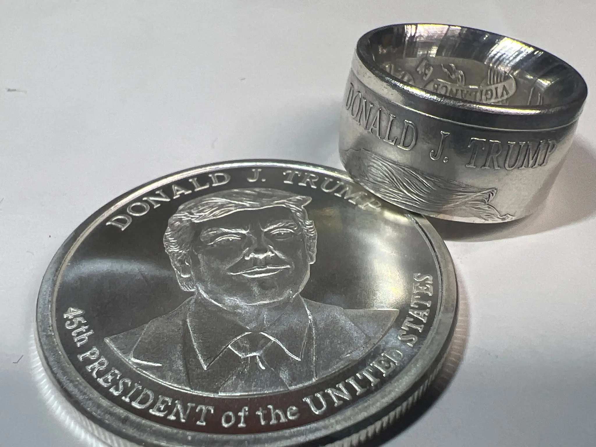 This Donald Trump Silver Coin Ring will be handmade by me in my home. Pick your sizes and I’ll get right to work on your ring! This is made from a 1 oz fine silver round.