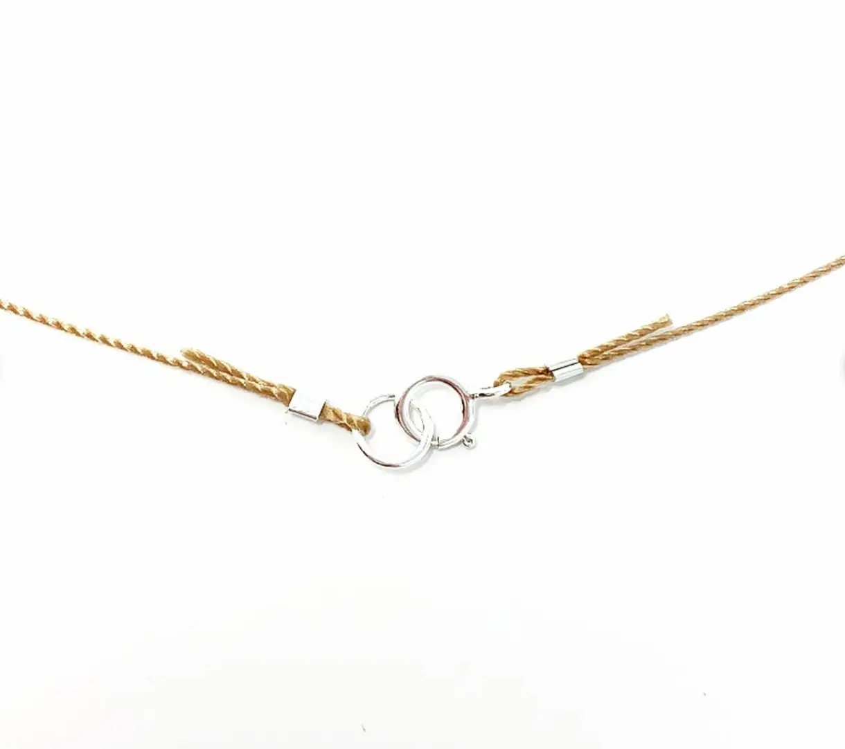 ...as natural materials are used, there will be variations between necklaces...this cord is strong but also very thin and light weight, its meant to look like the stone is almost floating on the neckline...