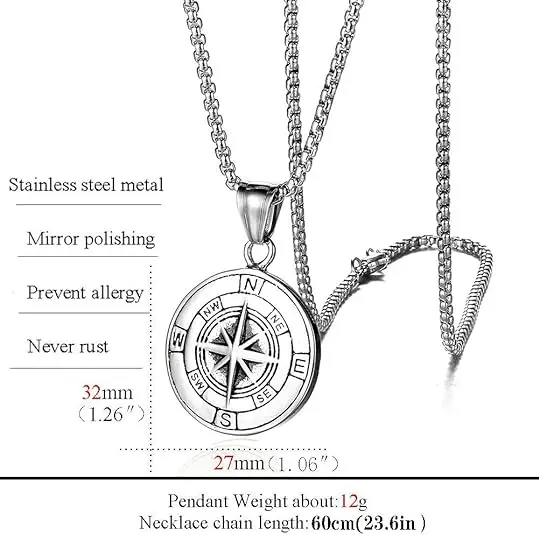 ·Design: The necklace features an intricately designed compass pendant to remind you of your direction.