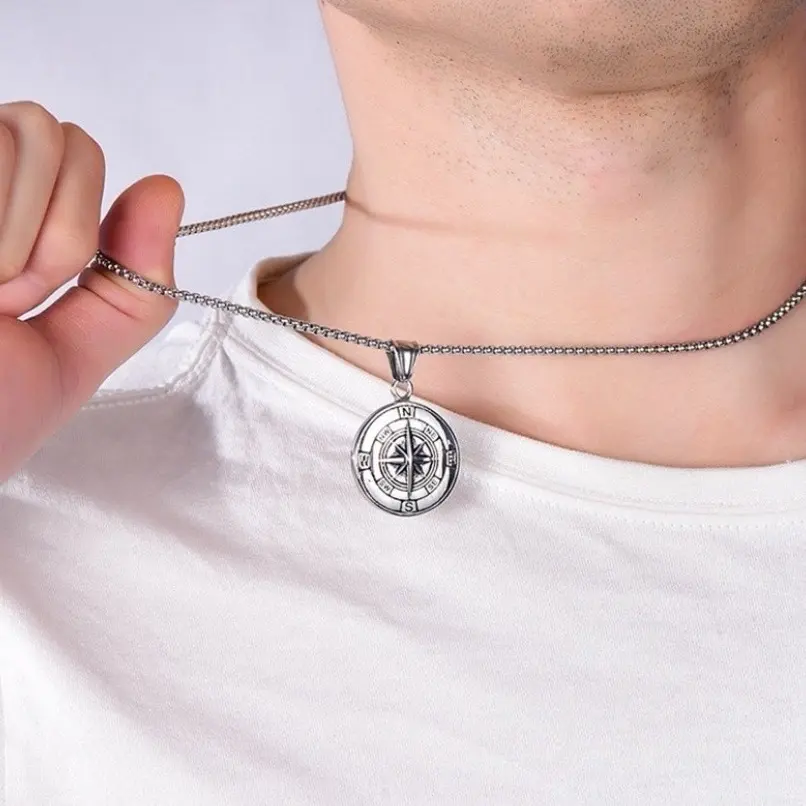 This Compass Pendant Necklace is a unisex accessory that will add a touch of charm to any casual outfit. The silver-tone charm is a beautiful and sturdy piece, made of high-quality stainless steel for long-lasting wear.