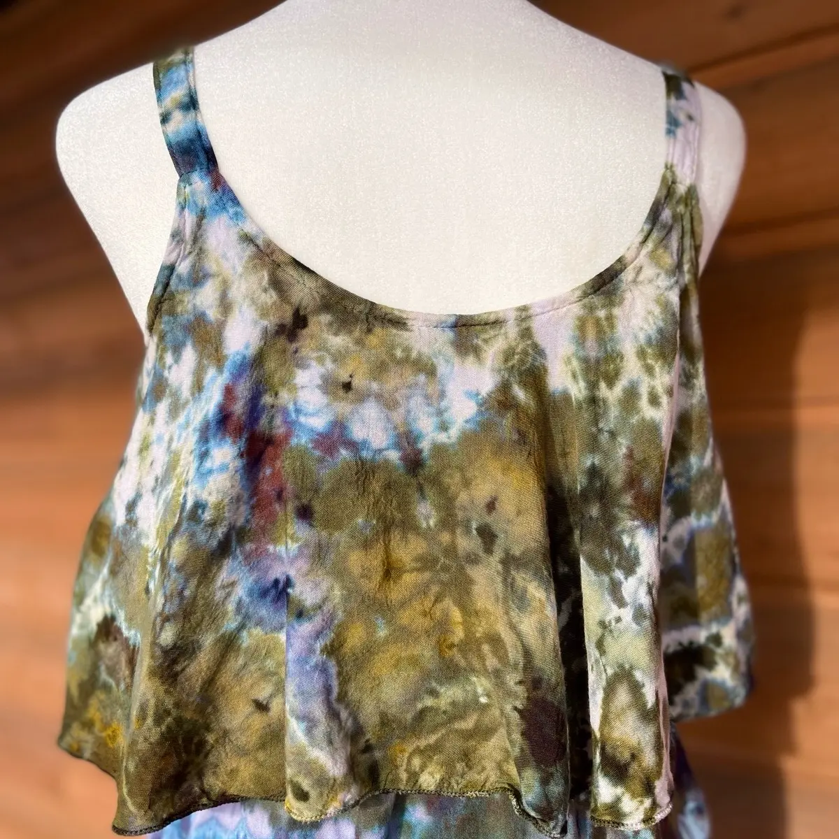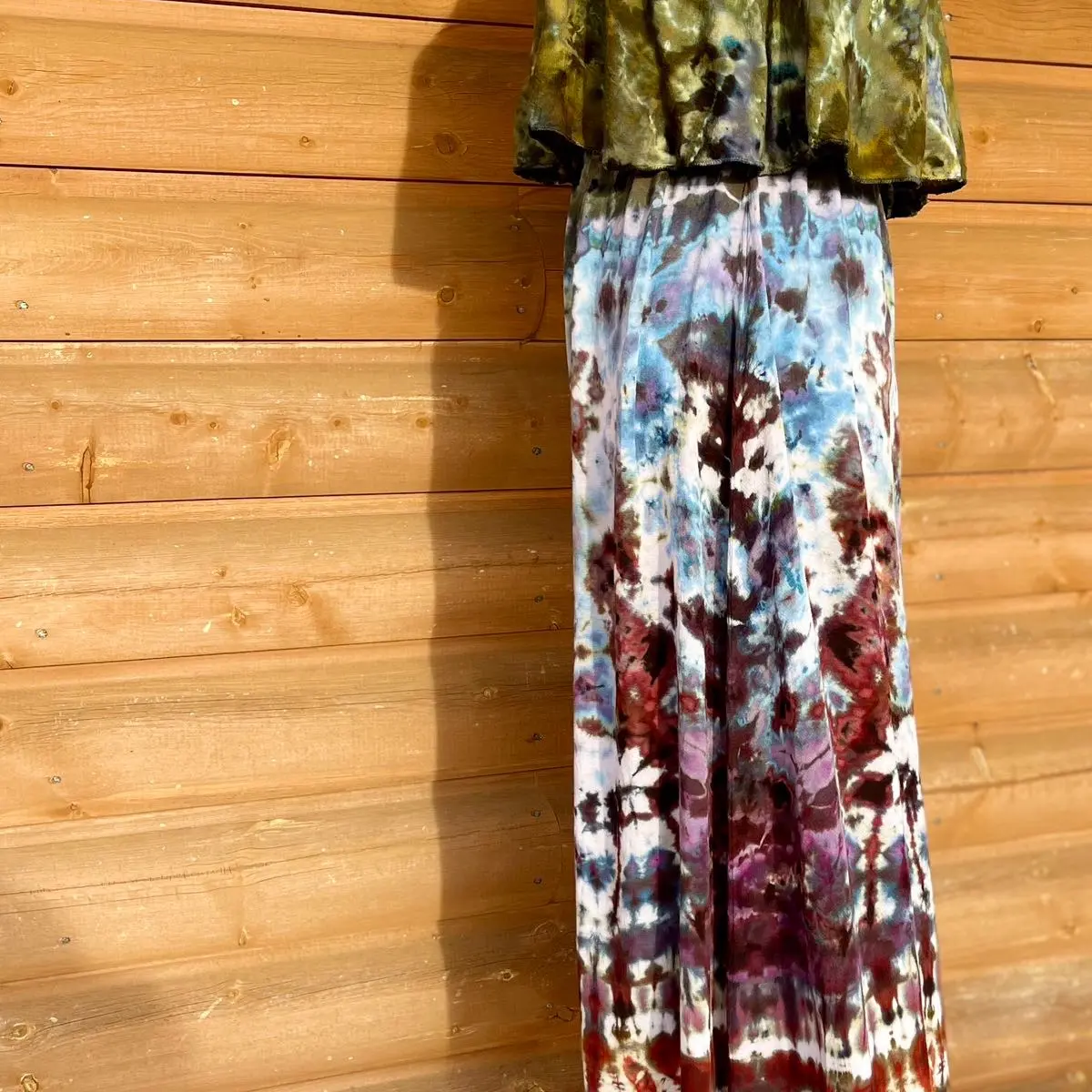 • Make a statement with the Oasis Ice Dyed Flounce Dress by SunDial Designs. This exceptional dress features a stunning ice-dye pattern that is sure to capture the attention of everyone around you. The colorful design and high-quality materials make it a must-have for any fashion-forward individual looking for elegance and sophistication.