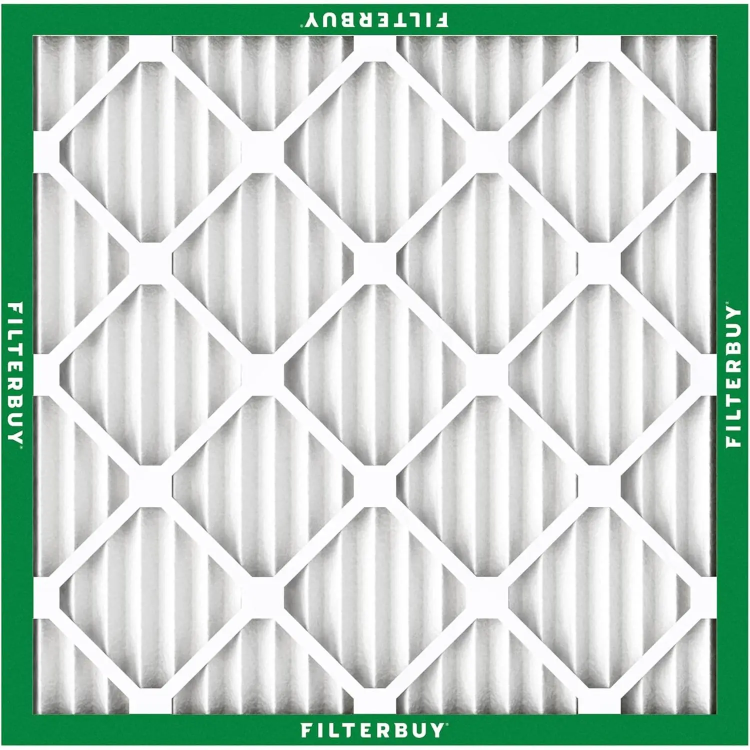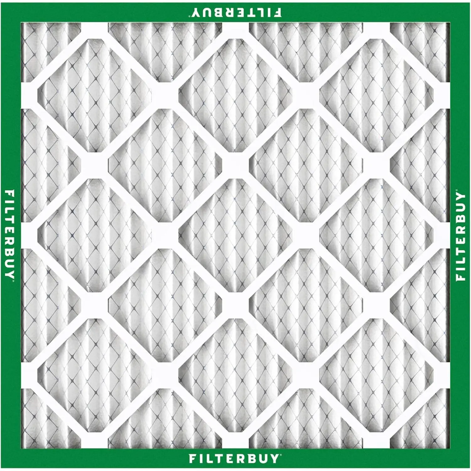 The Filterbuy replacement air filter 16x16x1 (actual size: 15.75" x 15.75" x 0.75") ensures that your furnace, air conditioner, heat pump, or HVAC system is circulating the cleanest air possible to help preserve your budget and healthy lifestyle. MERV 8 synthetic media (comparable with Clean Living Dust Defense MPR 600 & FPR 5) is recommended in most scenarios due to its capability to trap 90% of airborne particles, protecting your home or business from debris, lint, pollen, mold, dander, and other forms of dust without impacting air flow. High quality construction features an electrostatically charged design with 14 pleats per foot that captures more harmful particles and prolongs the products lifespan by three times that of fiberglass models (replace every 90 days for best results). Plus, our industrial grade beverage board frames are paired with dual wire backings that significantly outperform traditional cardboard compositions by improving structural integrity with their ability to endure temperatures up to 200 degrees Fahrenheit and withstand exposure to moisture. Installation is also made simple with the addition of easy-to-understand arrows that help identify the direction of air flow and subsequently the way the filter needs to be placed. To top it off, all our components are 100% manufactured within the United States and designed with recyclable materials, providing an eco-friendly alternative to enhancing your air quality.