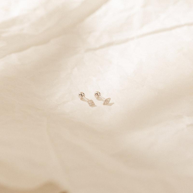 Looking good isn’t the only goal, it’s also important to feel comfortable. Our Jocelyn Diamond Studs wonderfully combine these two elements. A dainty diamond shaped charm encrusted with tiny stones elevates your earring stack with sparkling accents. Created with a ball back design, they make the perfect everyday "wear and forget" staple.