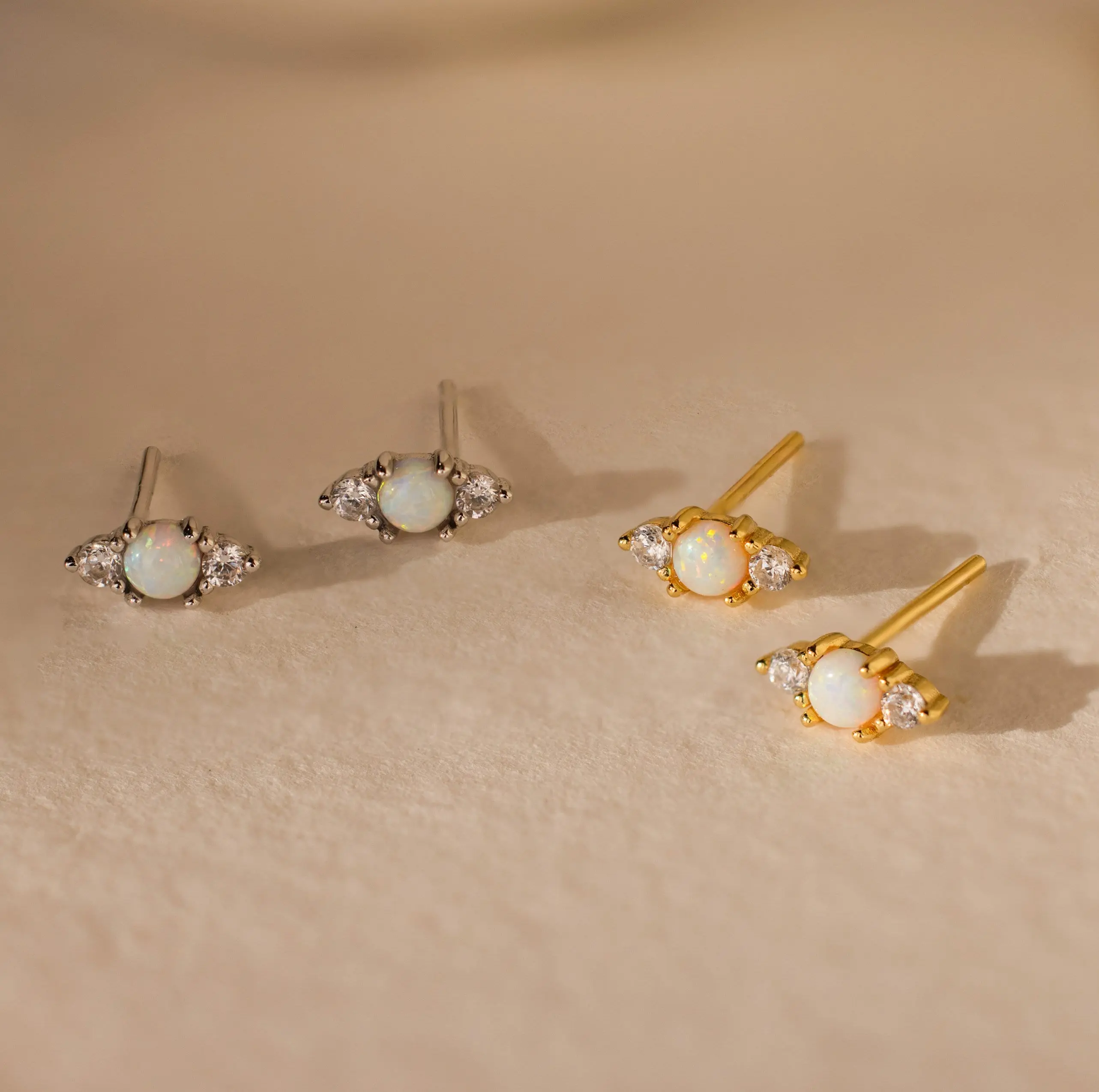 ·Dimensions: 7.5x3.5mm Studs | 3mm CZ Opal Stones | 1.5mm CZ Diamonds