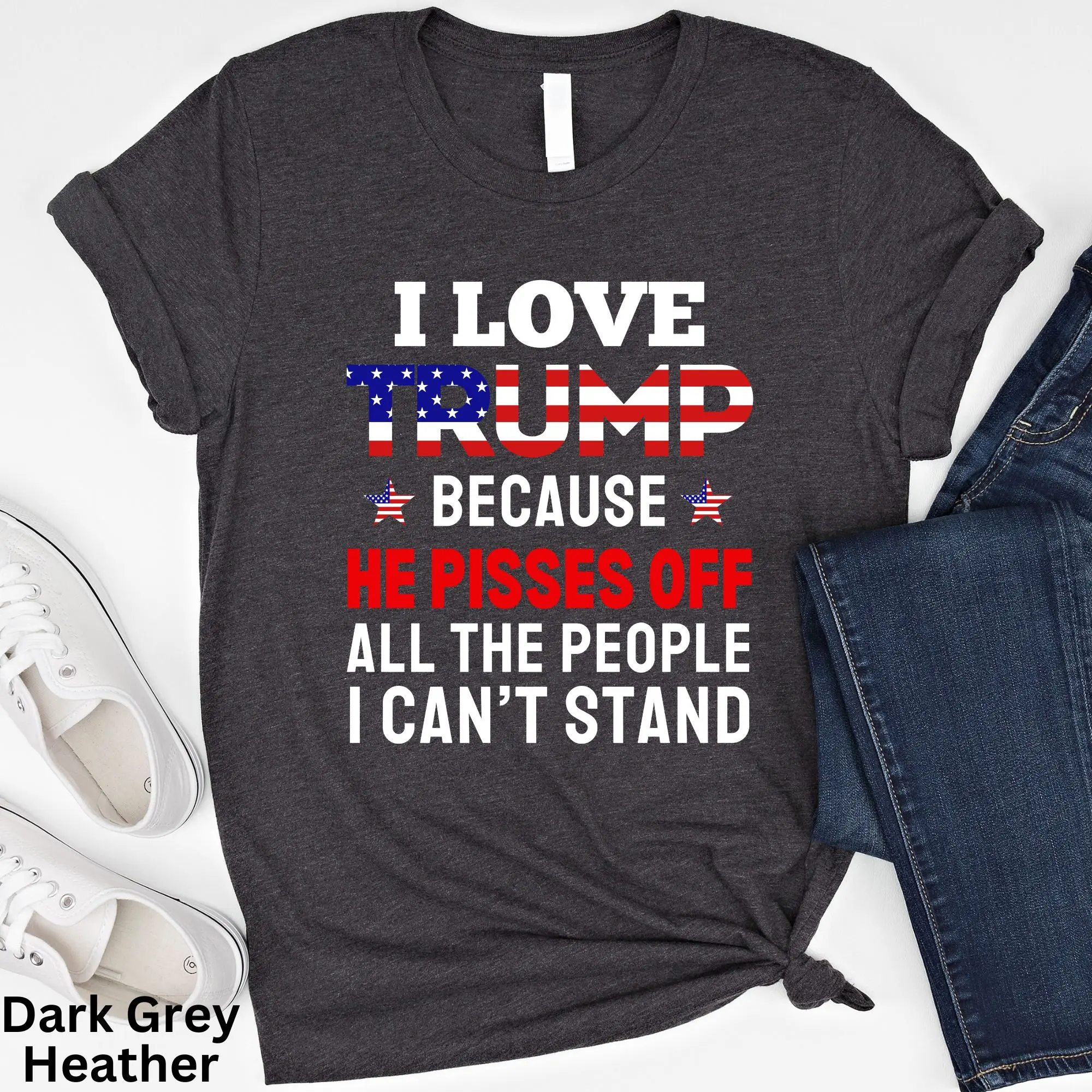 I Love Trump Because He Pisses Off All The People I Can't Stand Shirt Funny Trump Shirt Gift For Trump S***or***s Vote Trump 2024 tshirt,by to support trump