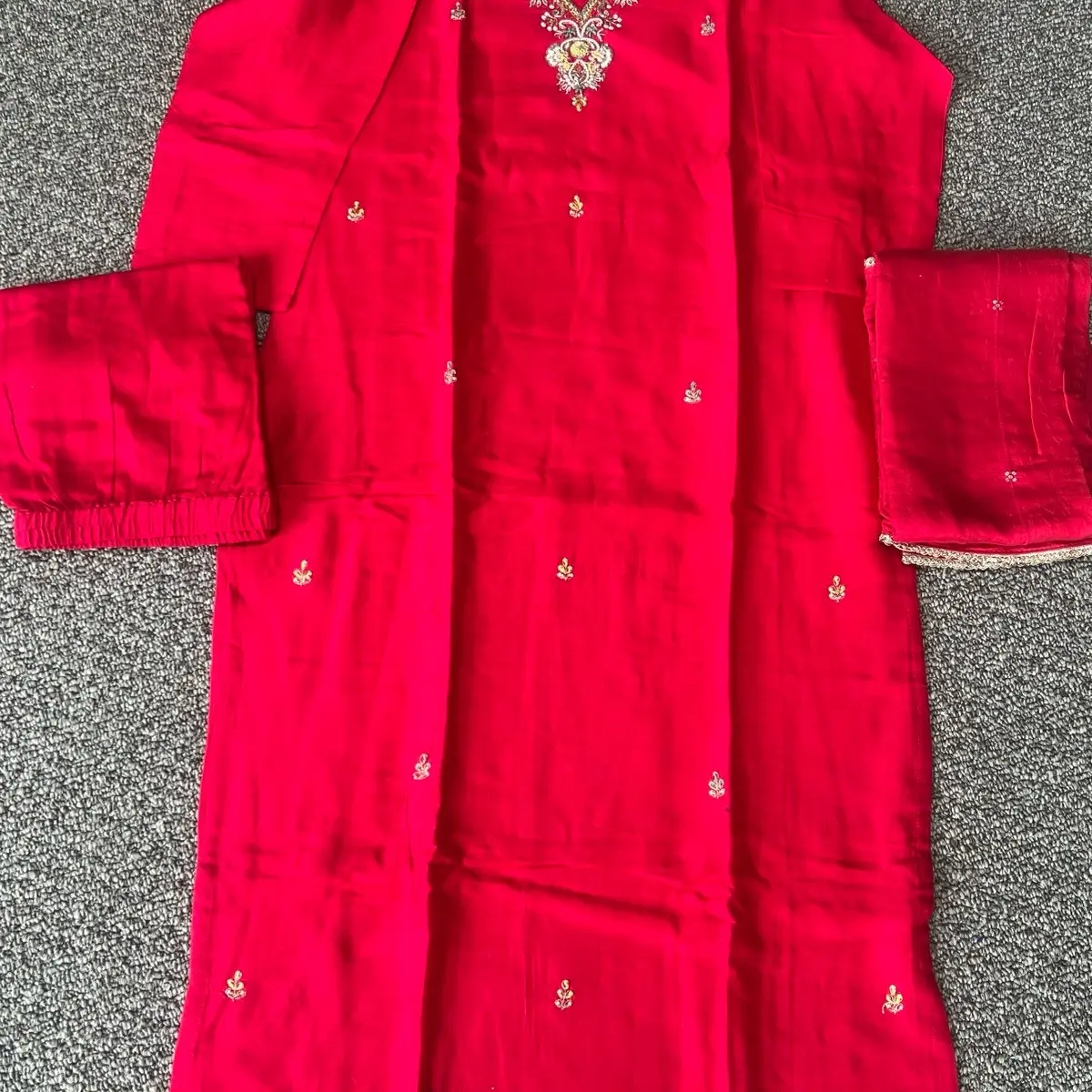 Red color very beautiful silk hand work kurta set Size L/Xl/2xl/3XL