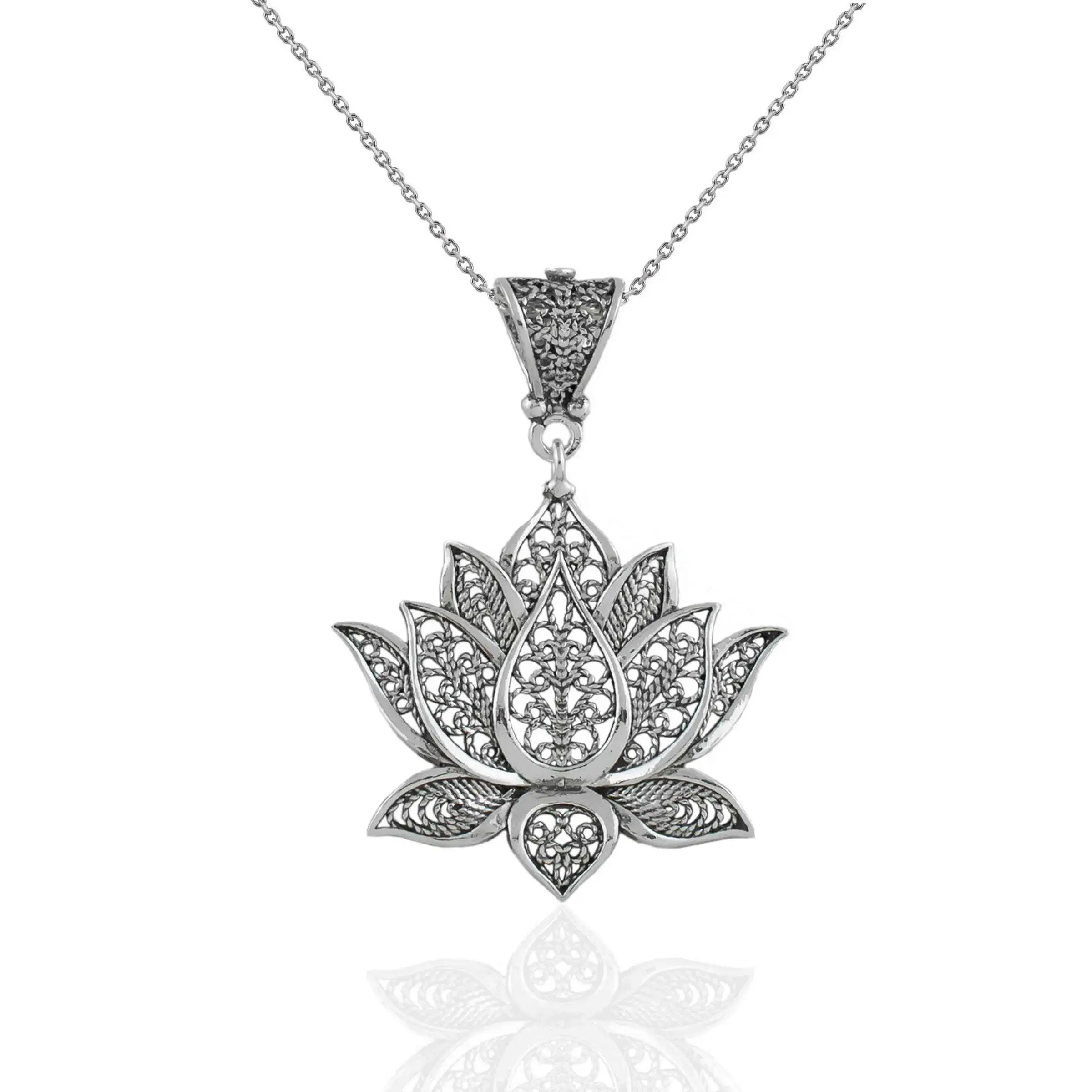 Filigree Art Sterling Silver Lotus Flower Women Pendant Necklace