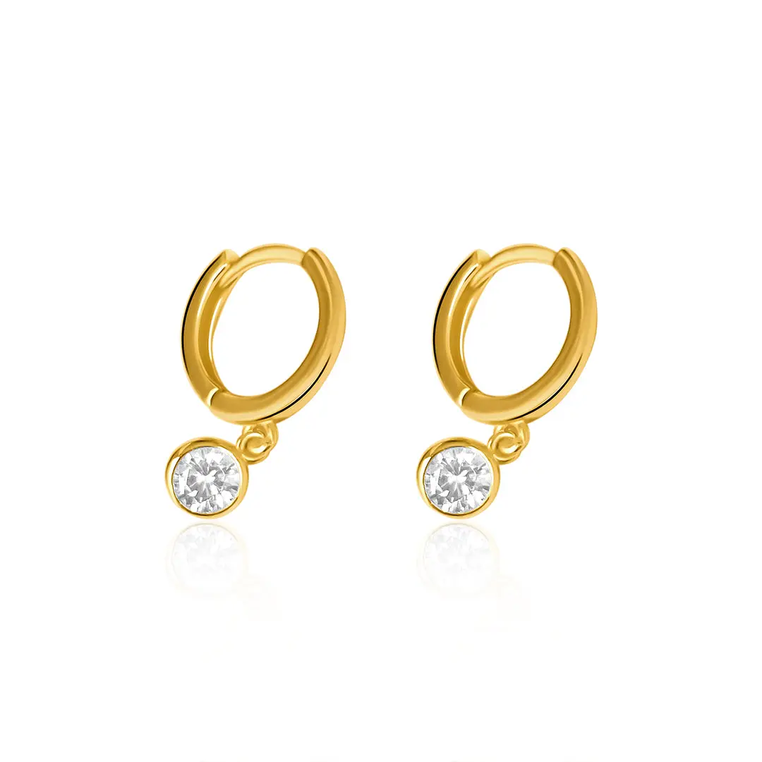 Milan Chiva 14K Gold Plated Small Huggie Dangle Hypoallergenic Earrings for Women Lightweight Trendy Heart Dainty Jewelry with Multicolor Stones