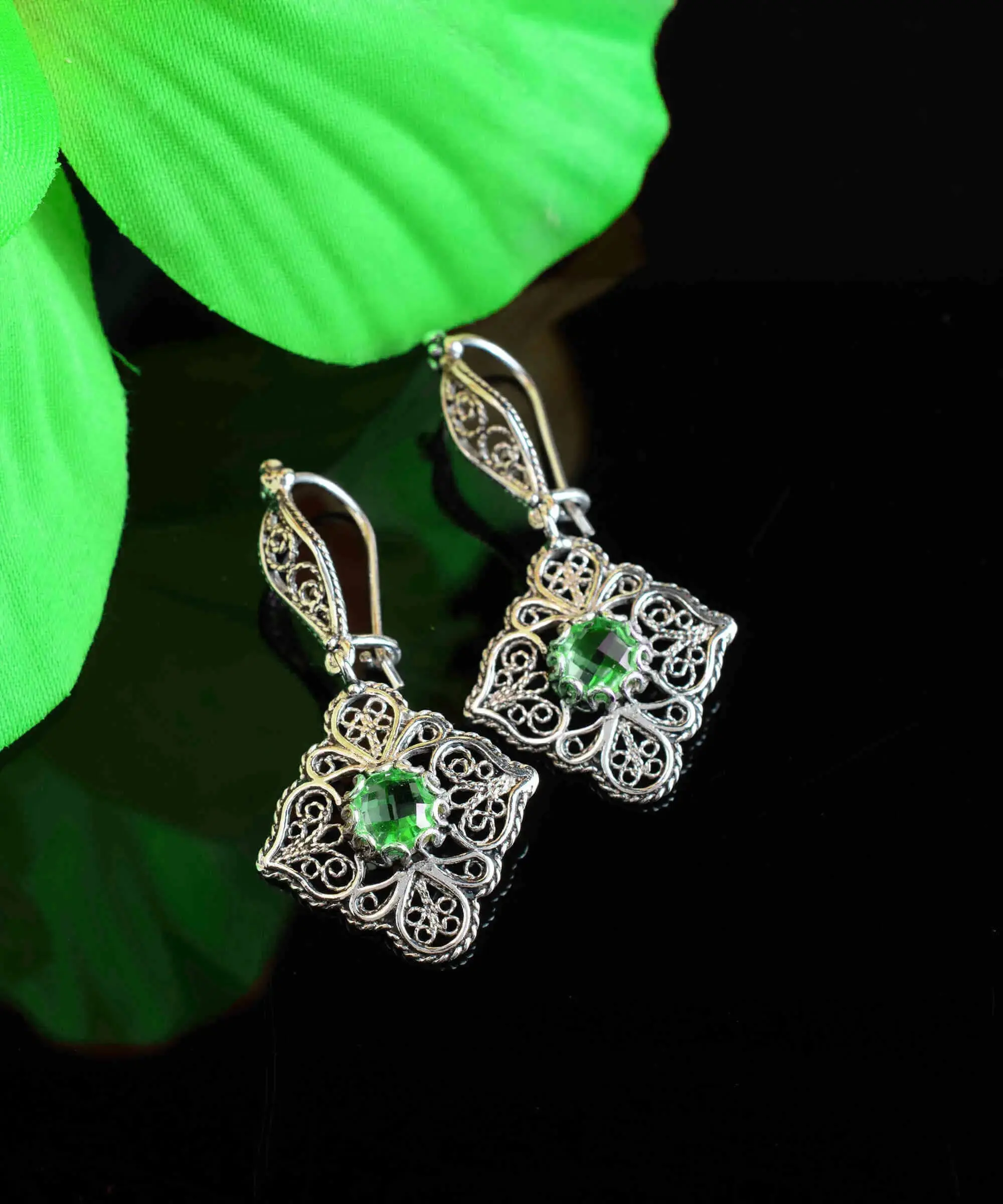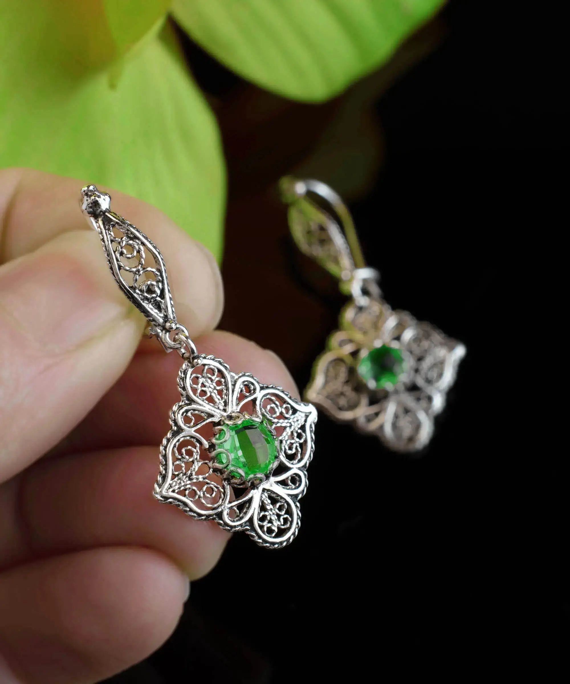 Adorn Yourself with Elegance: Handmade 925 Sterling Silver Filigree Earrings Featuring May's Birthstone, Emerald