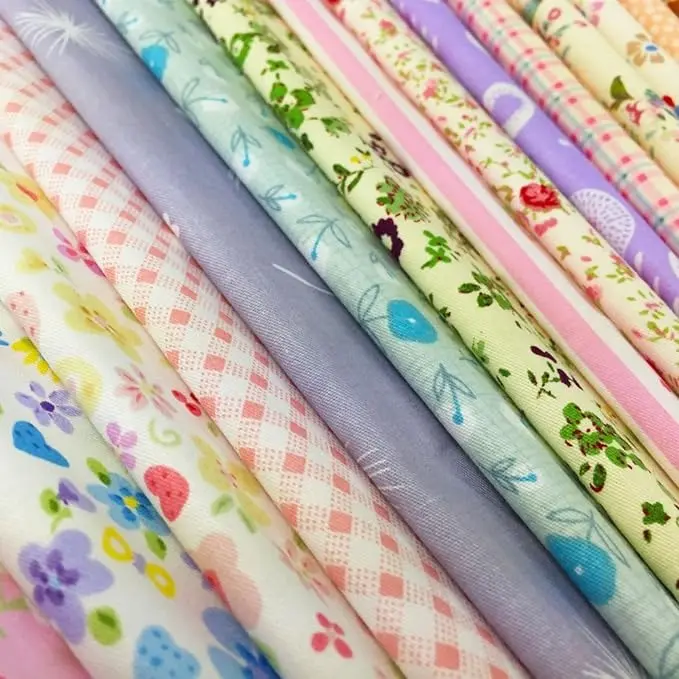 Nice assortment of differently printed,Lots of different patterns suitable for quilts,cushion covers, small purses,coin bags,table cloth,really an endless list of possibilities .Wonderful design,color and texture. Polka dots, stripes, gingham, prints, flowers.