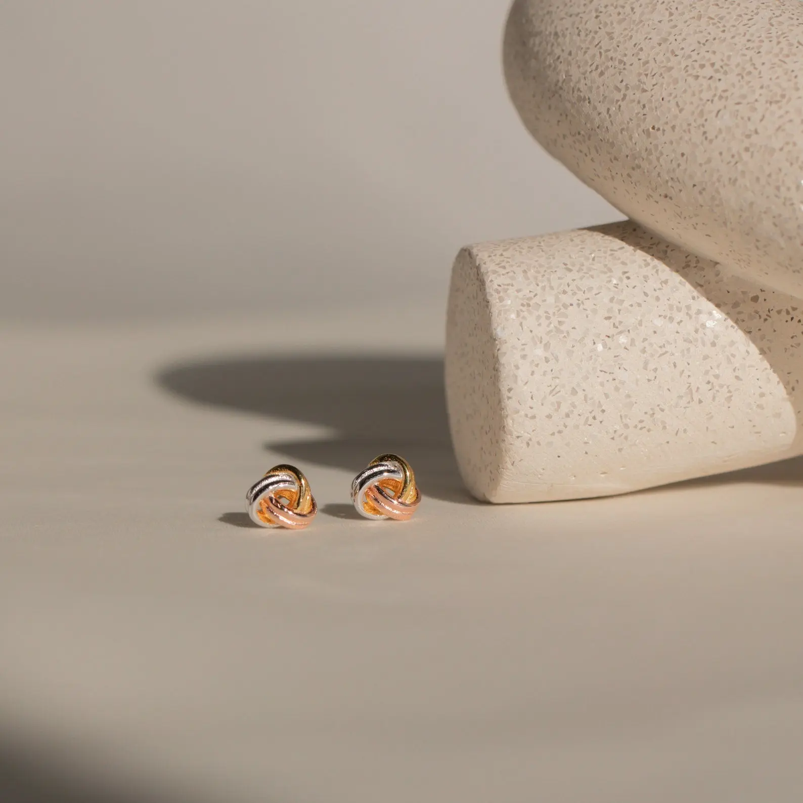 Dainty and minimalist, these handmade love knot studs are the perfect way to celebrate a milestone anniversary. The three-knot motif is known as a trinity knot, which symbolizes love, luck and faithfulness. A symbol fit for the brilliant person in your life that means something special to you both.