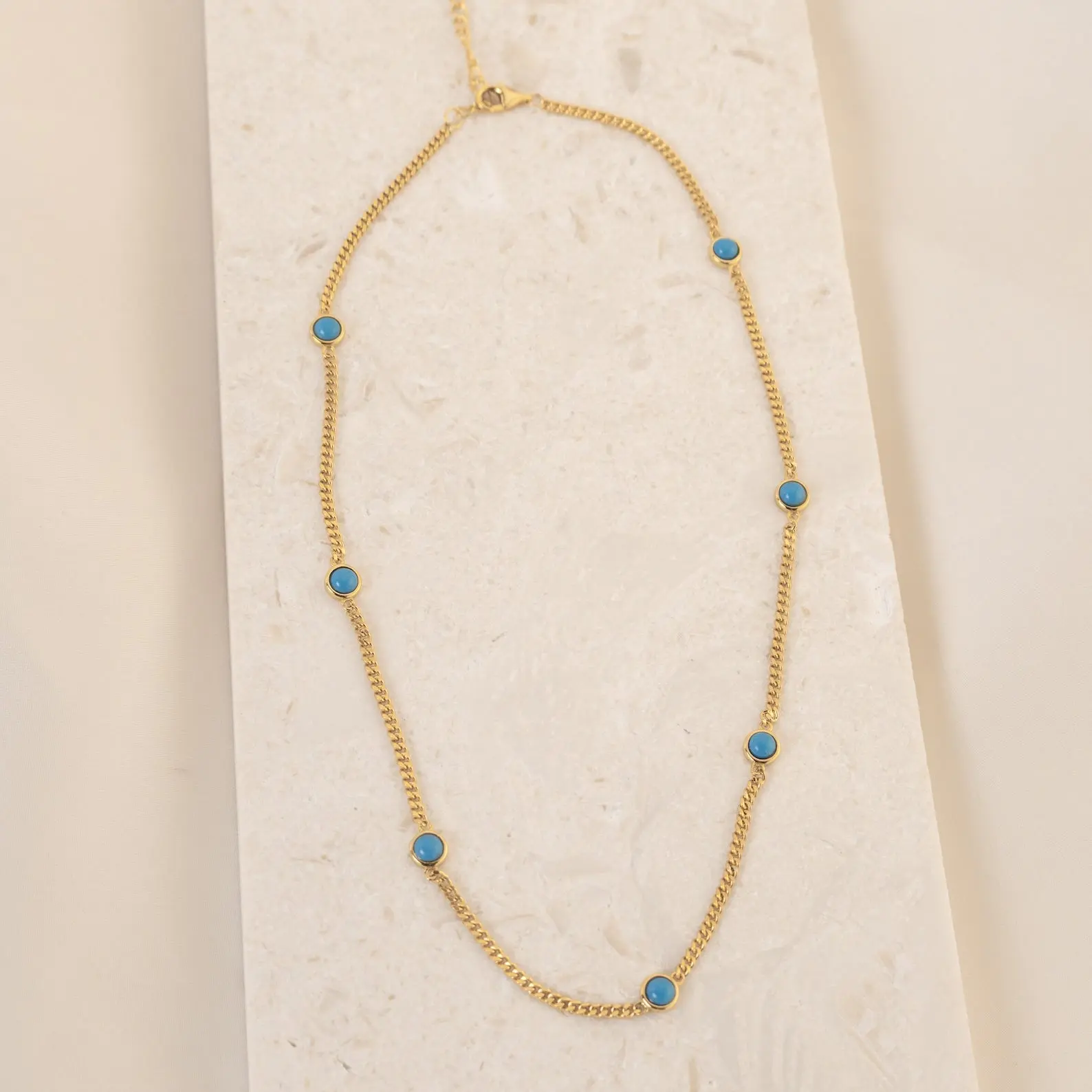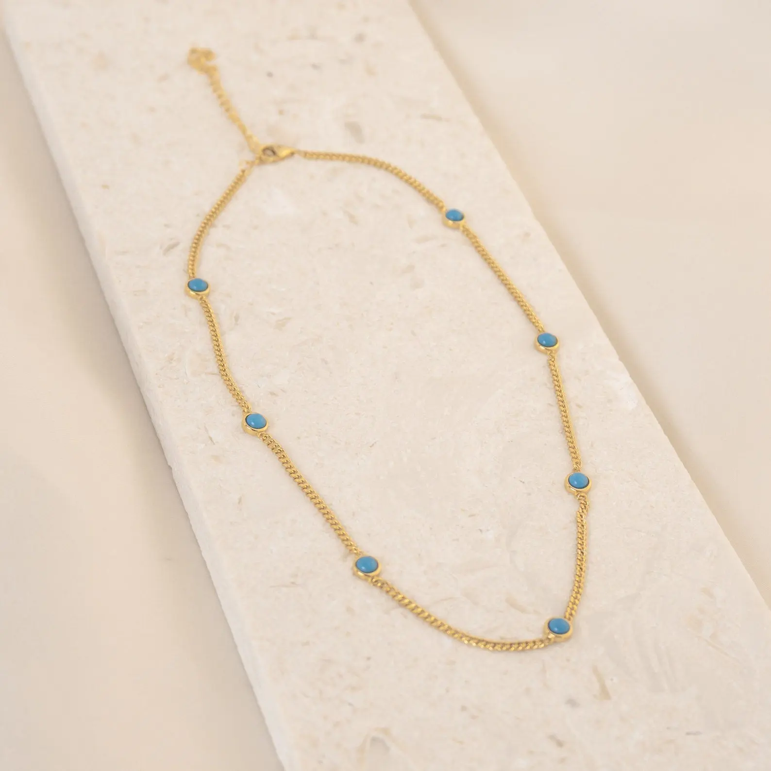 Channel your inner greek goddess with the Santorini Turquoise Choker. The perfect choker necklace to take on vacation. A thick curb chain lined with bright turquoise drops, add a pop of color to your all white outfit.