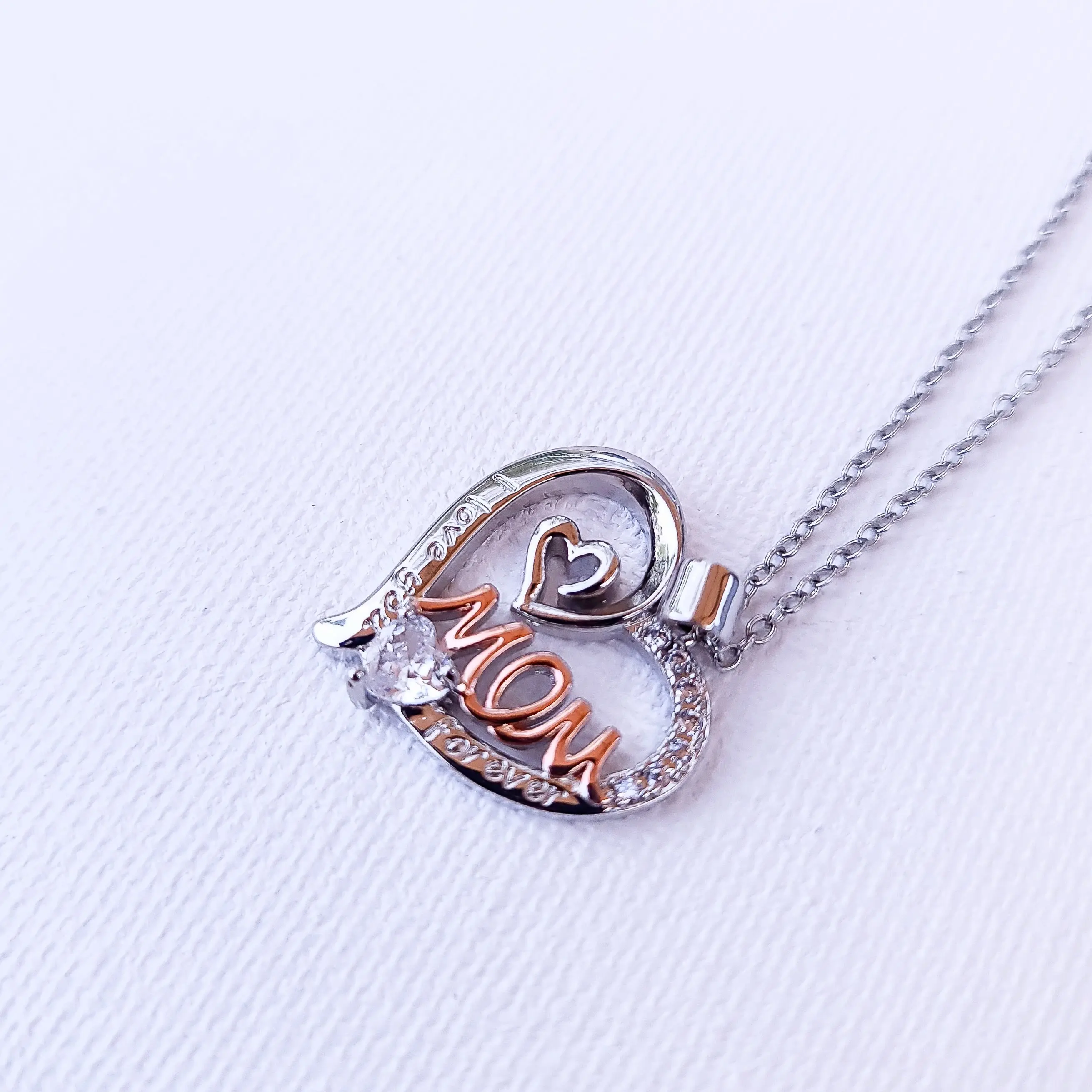 Introducing our Heart Mom Necklace: a sterling silver pendant, meticulously crafted to honor the most important woman in your life. With an inscribed heart surrounded by seven sparkling stones, it symbolizes the depth of a mother's love. This necklace is more than just a gift; it's a token of gratitude for all the sacrifices and unconditional love. Give the gift of love with our Heart Mom Necklace and cherish the special moments shared with mom.