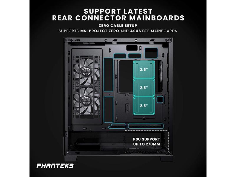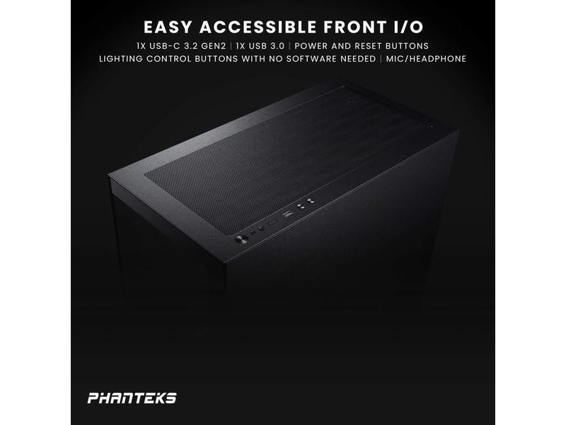 5. Phanteks XT View, Mid-Tower Gaming Chassis, Tempered Glass Front and Side Window, USB-C 3.2 Gen2, 3x M25-120 D-RGB fans included, Black