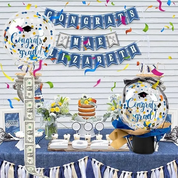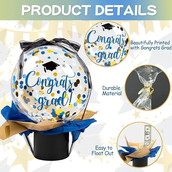 2024 Graduation Gifts, Graduation Decorations Class Of 2024 Money Gift Pull Box, Funny Money Balloon Surprise Cash Gift Idea For Boys Girls College High School Congrats Grad Blue Gold