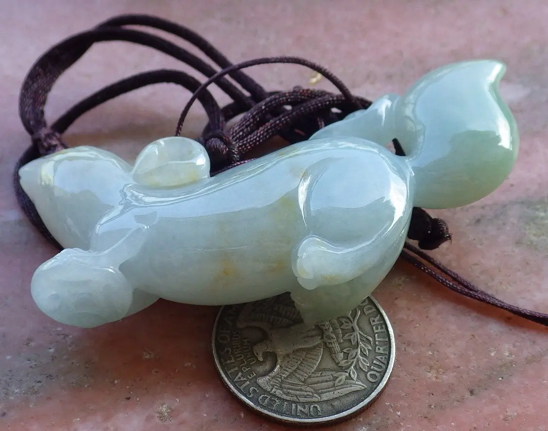 Certified Hand Carved Green Red Natural Burma A Jade Jadeite Suirrel Pendant Necklace