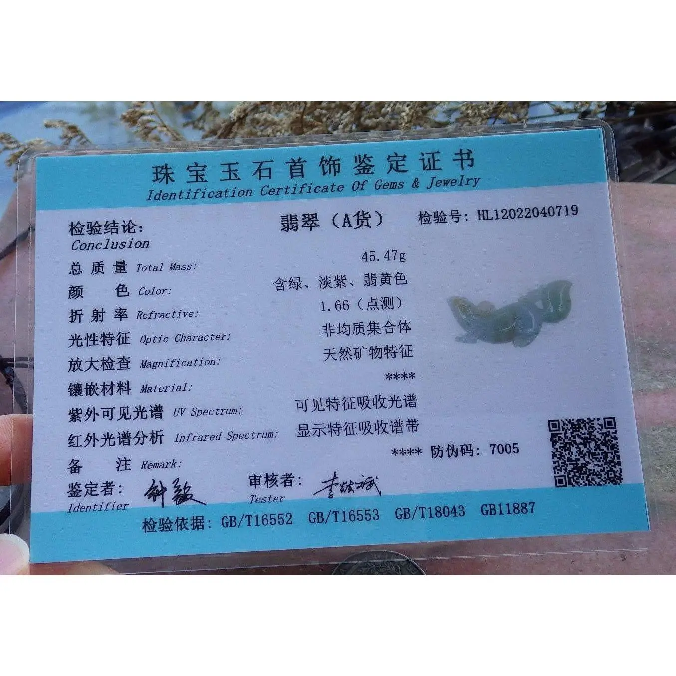 Certified Hand Carved Natural Lavender Green Burma A Jade jadeite Dragon Pi Xiu Gourd Pendant Necklace