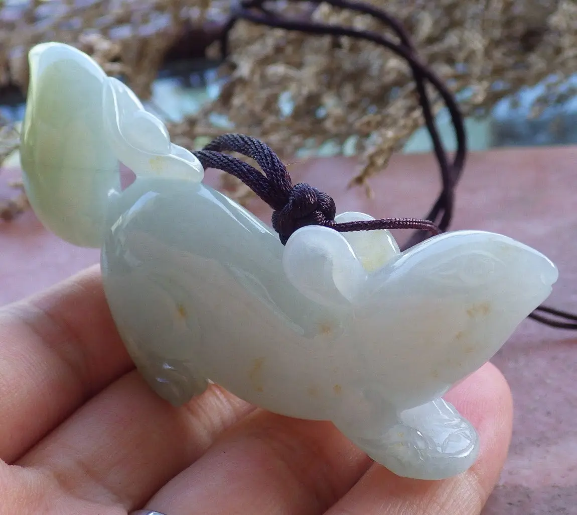 Certified Small Hand Carved Natural Myanmar Burma A Ice White Jade jadeite Zodiac Snake Pendant Necklace