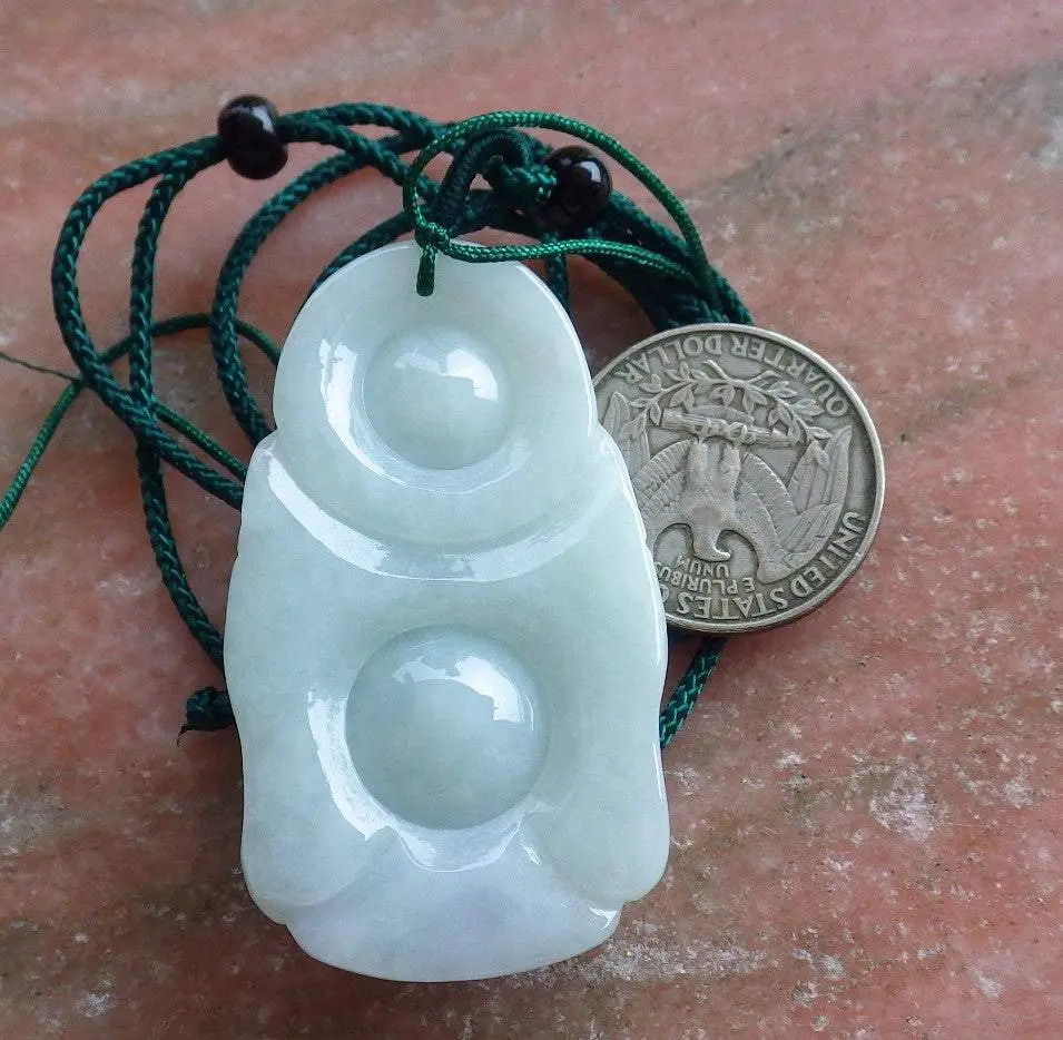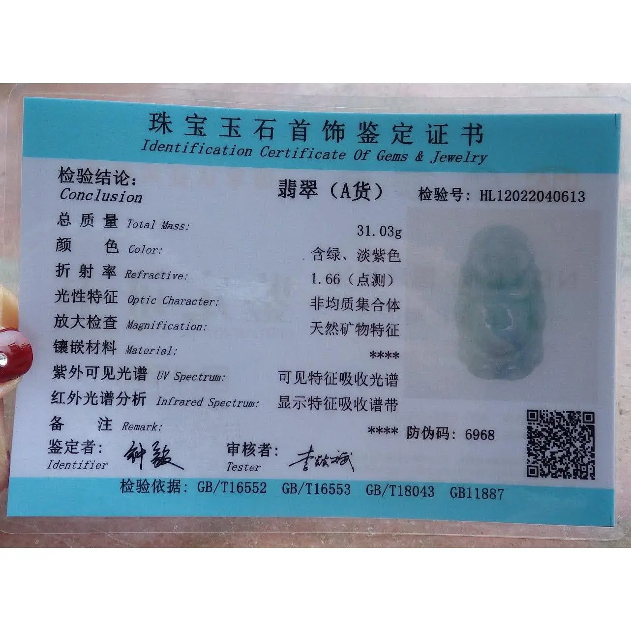 Certified Hand Carved Green Natural Myanmar Burma A Jade Jadeite Buddha God Lucky Amulet Pendant Necklace