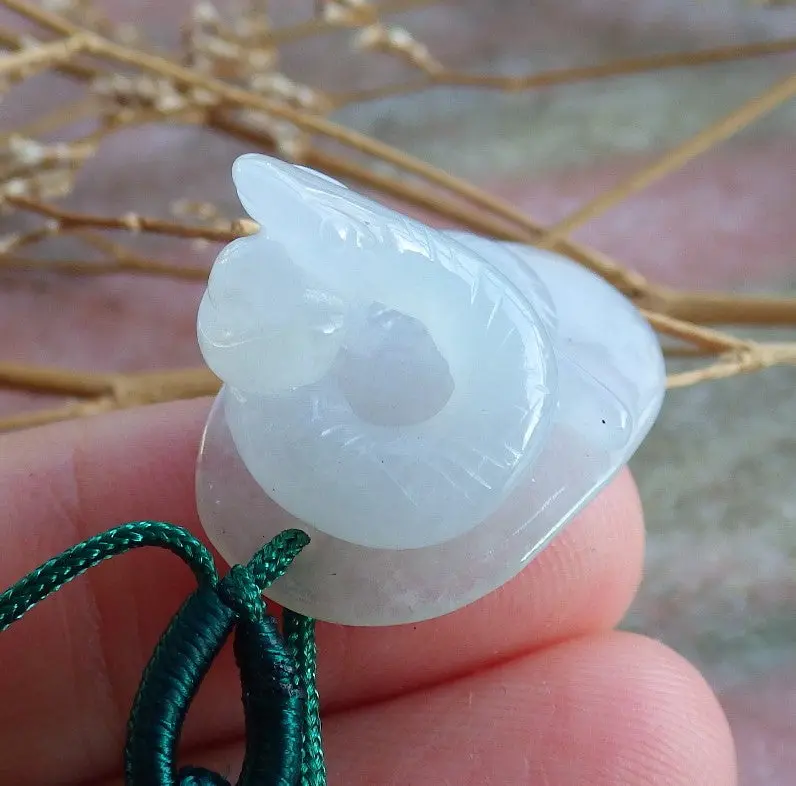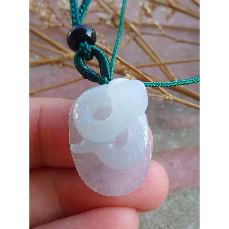 Certified Small Hand Carved Natural Myanmar Burma A Ice White Jade jadeite Zodiac Snake Pendant Necklace