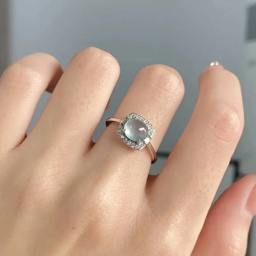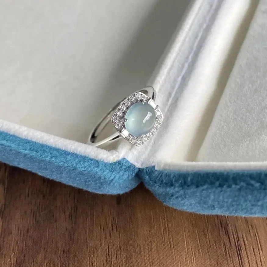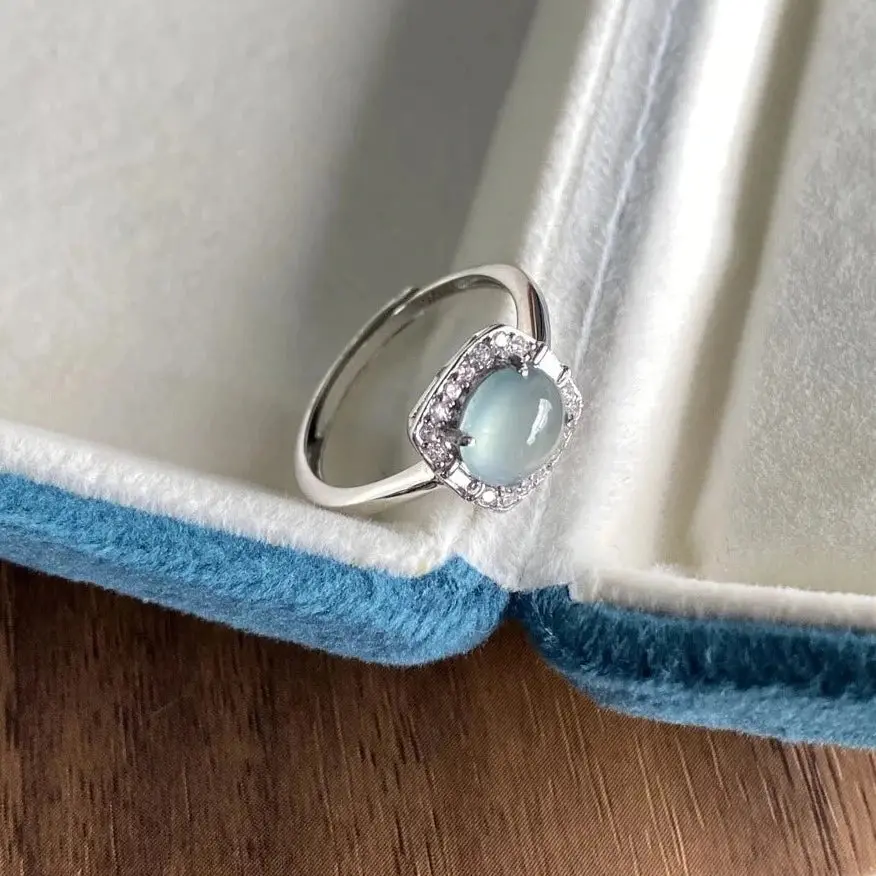 Natural Icy Guatemala Jadeite Ring - Sky Blue - Size Adjustable