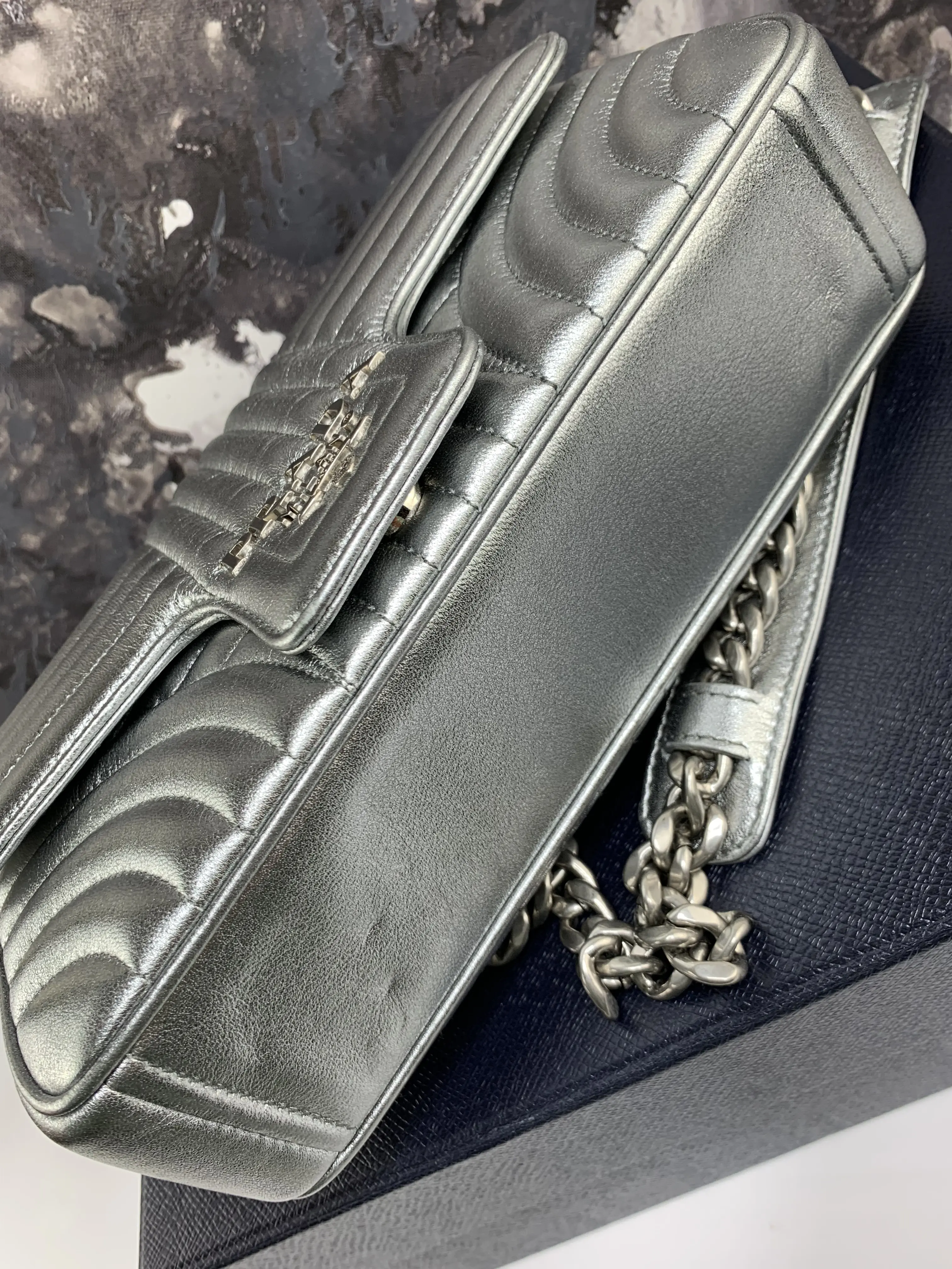 Rest assured knowing there are no cracks or tears on this pre-owned bag. It comes with its original box and has been well-maintained for a clean appearance.