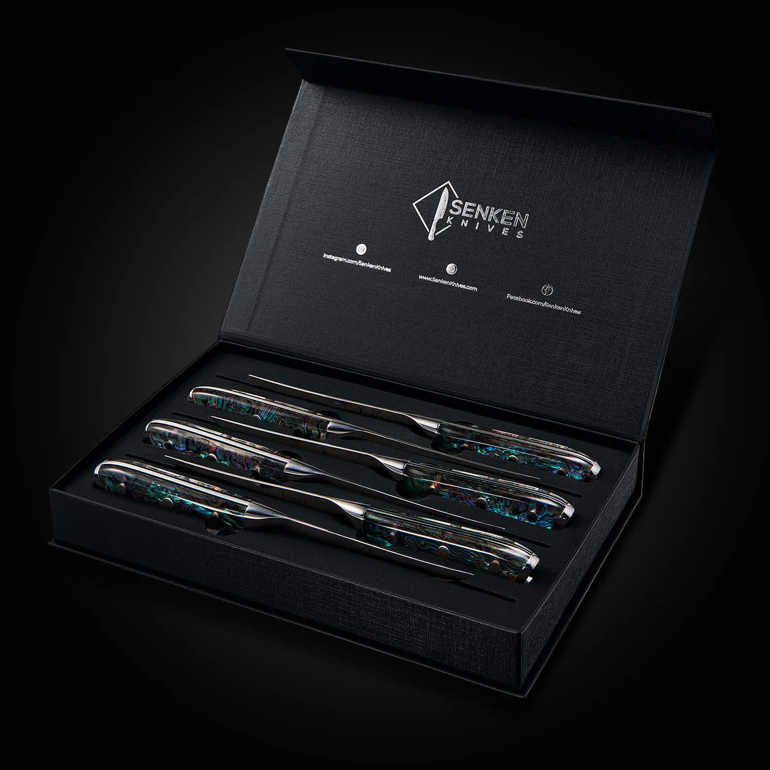 The unique handles are made from real deep-sea abalone shell and will glisten beautifully in your kitchen. The handle is also completely waterproof, heat resistant, and non-slip, so it will feel absolutely wonderful in your hand. Finally, there is a Blossom Plum Rivet on the handle to enhance both the look and feel.