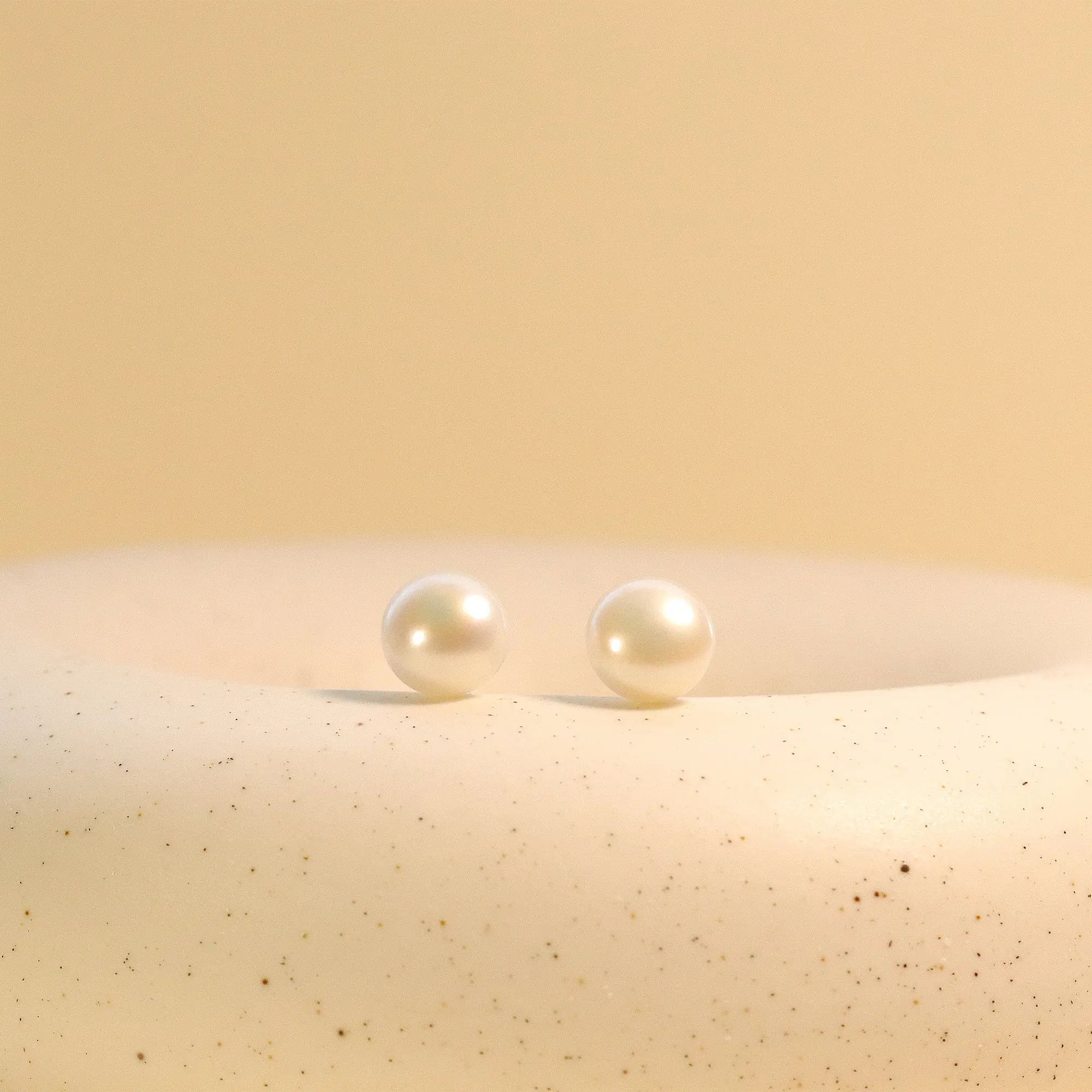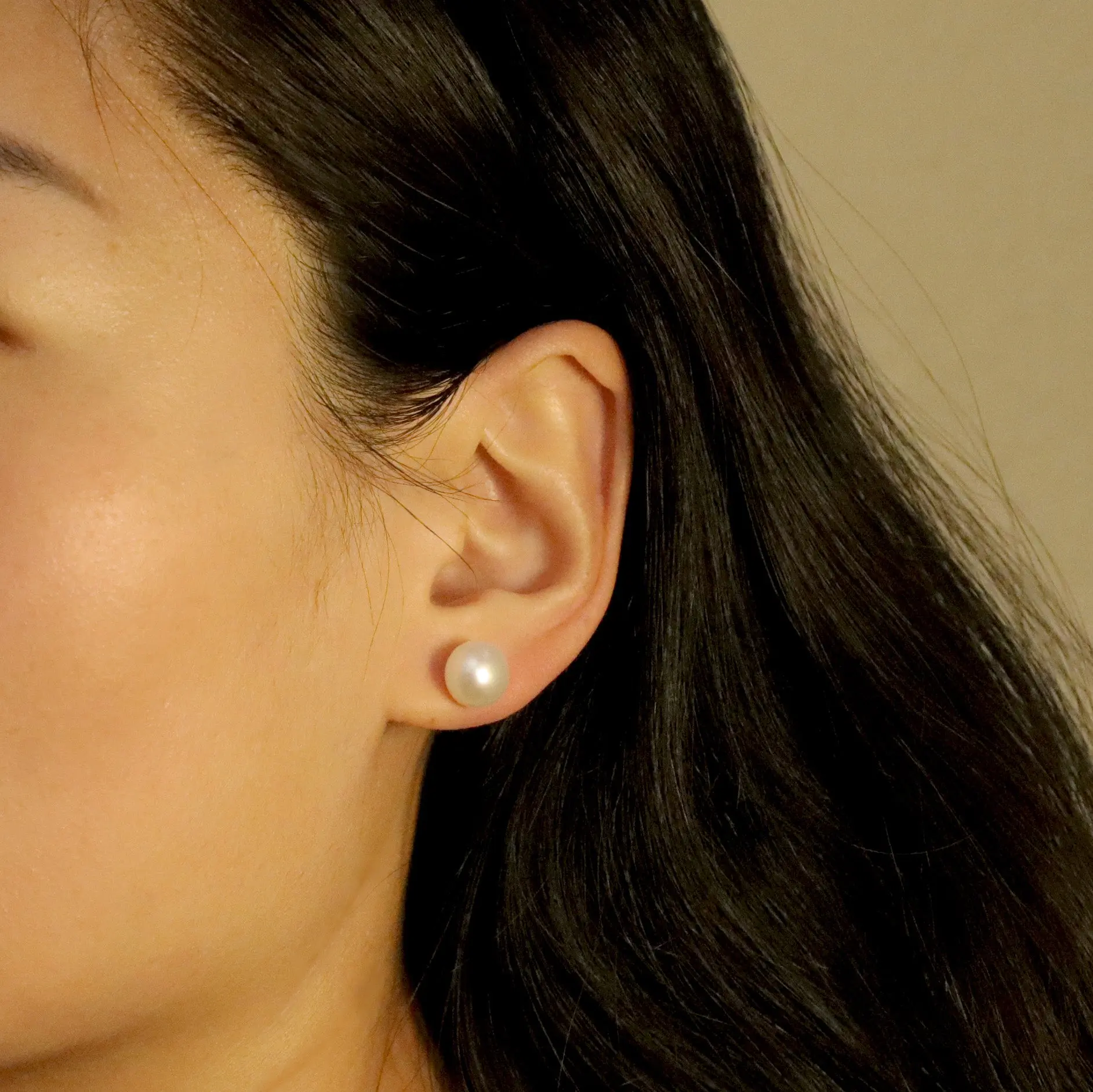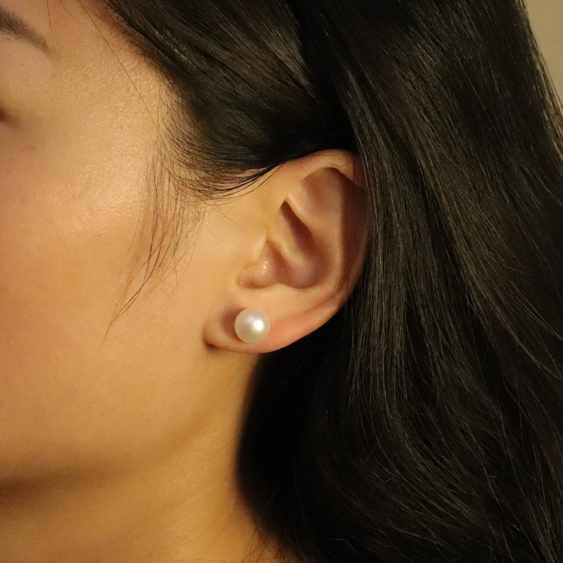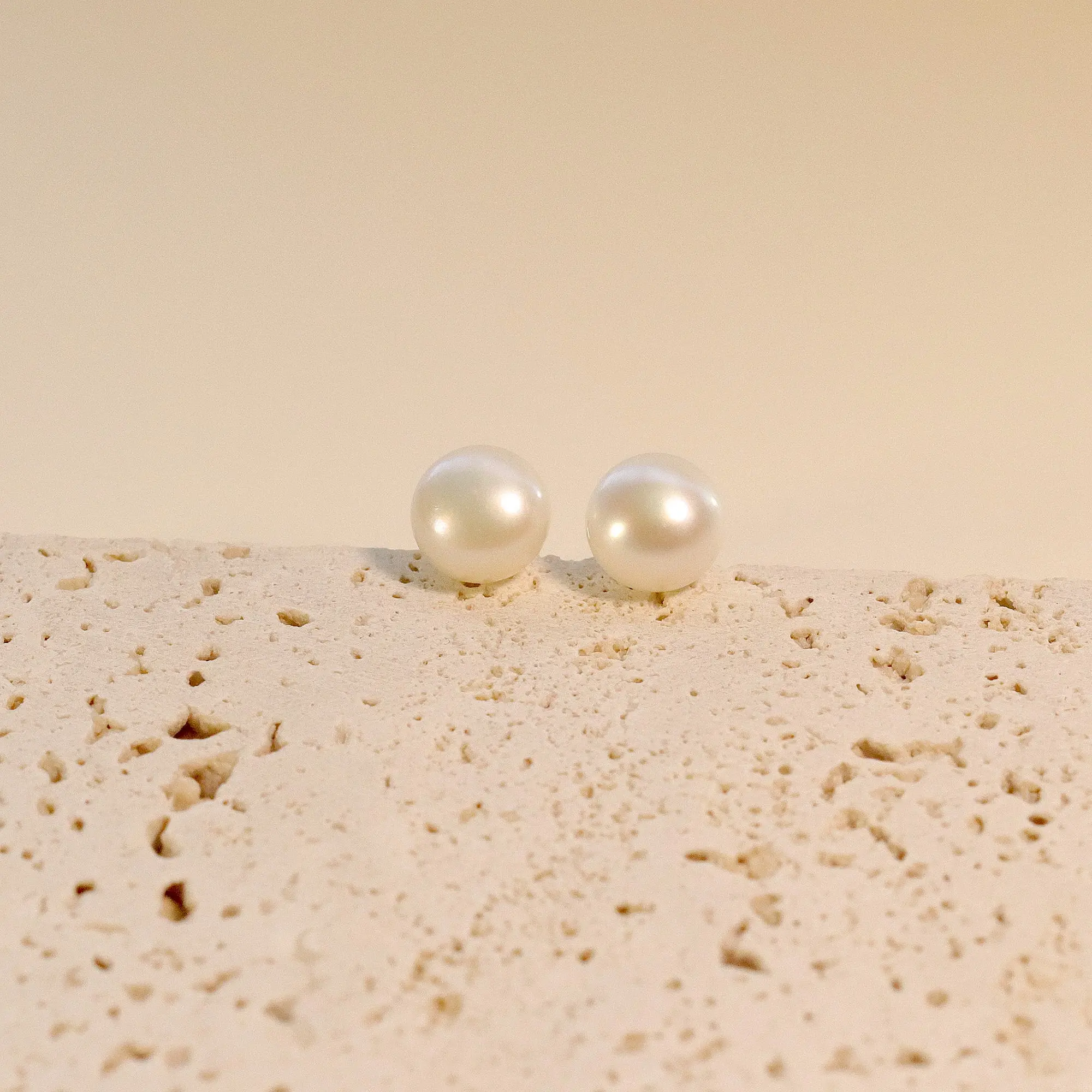 White Freshwater Pearl 10mm Stud Earrings, 925 Sterling Silver, Minimalist Earrings for Daily Wearing