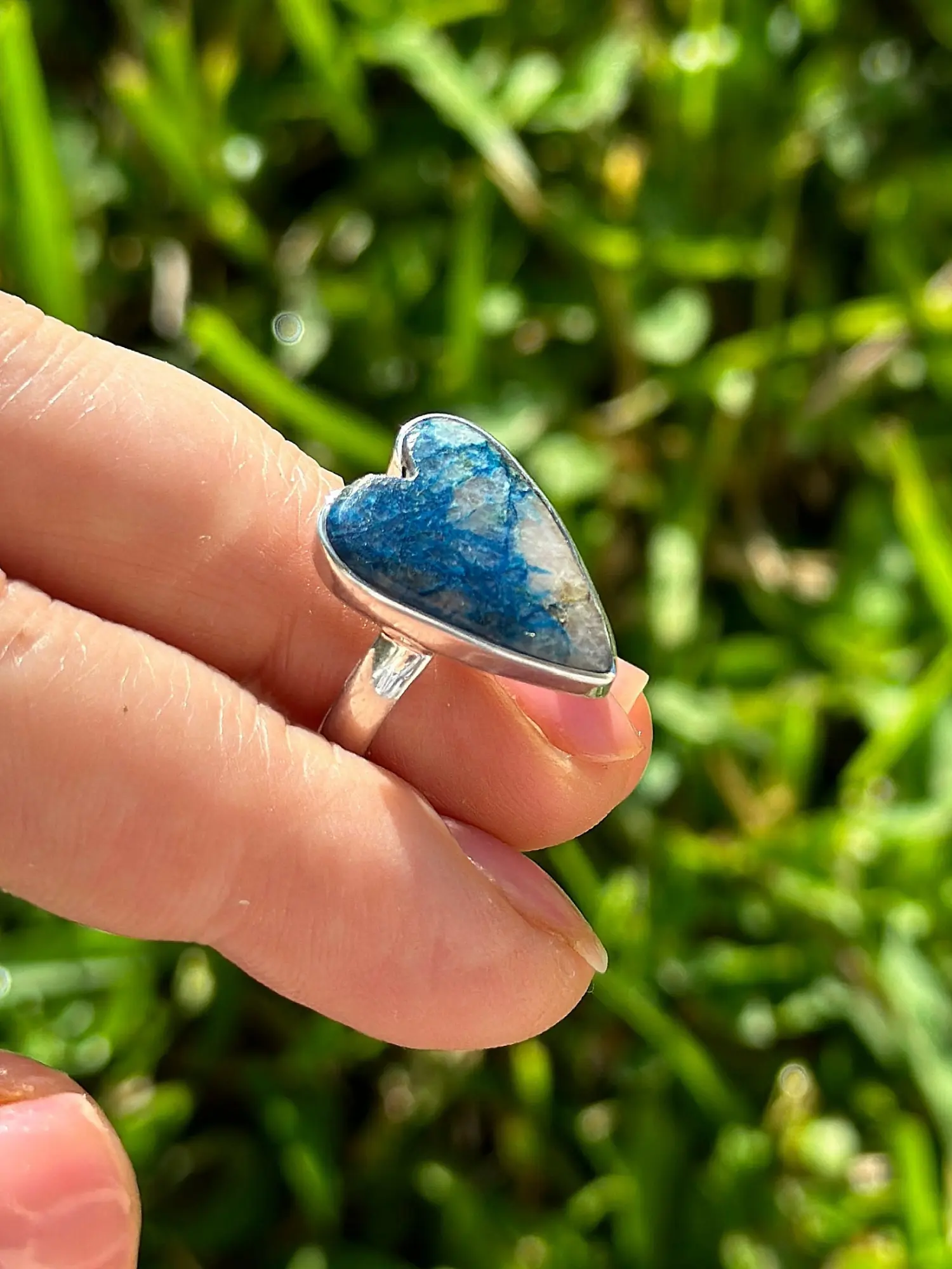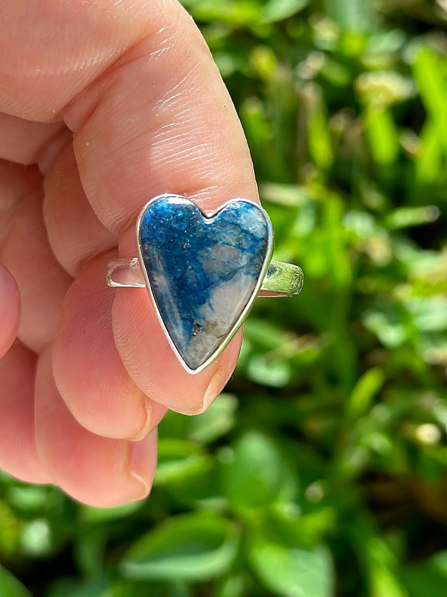 silver ring with blue stone