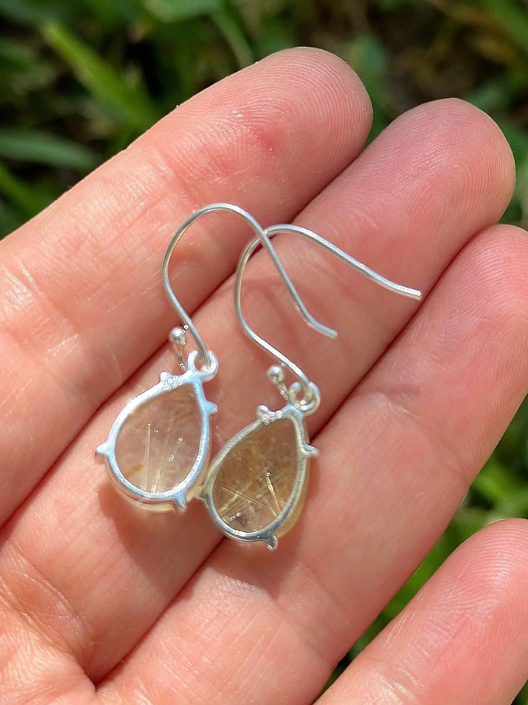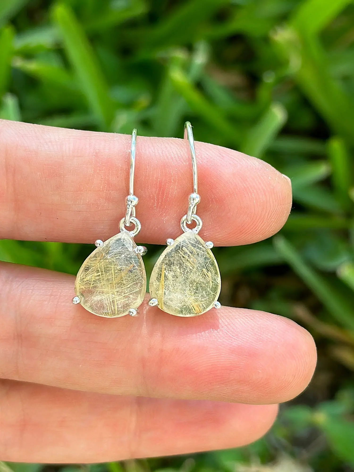 Natural Golden Rutile earrings set in 925 sterling silver.