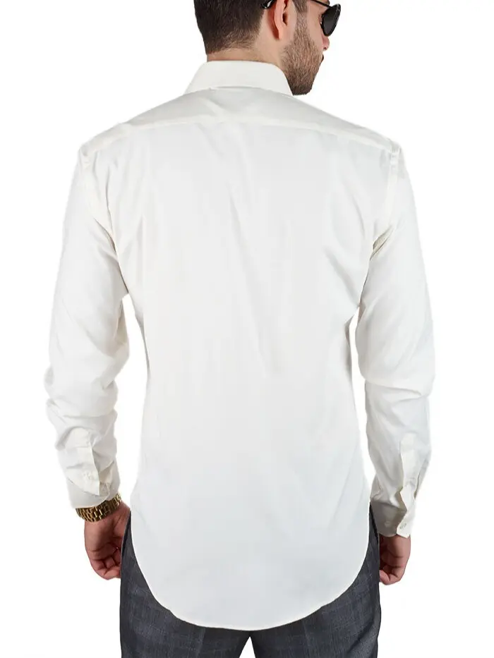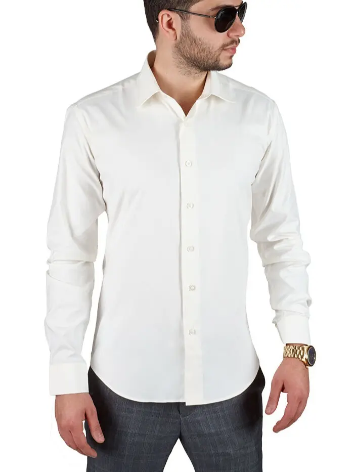 Slim Fit Off White Ivory Men's Spread Collar Dress Shirt Convertible Cuff Fitted AZARMAN