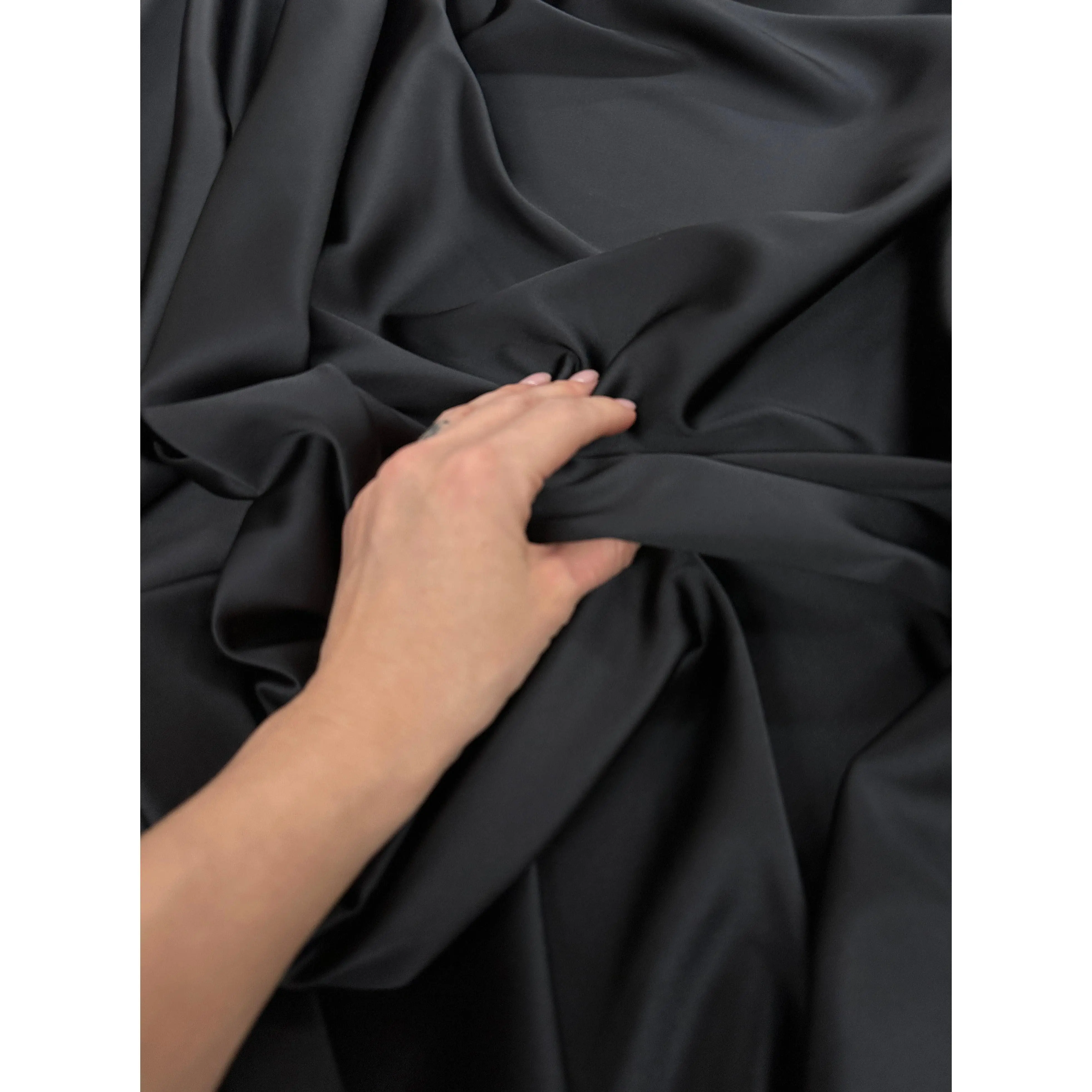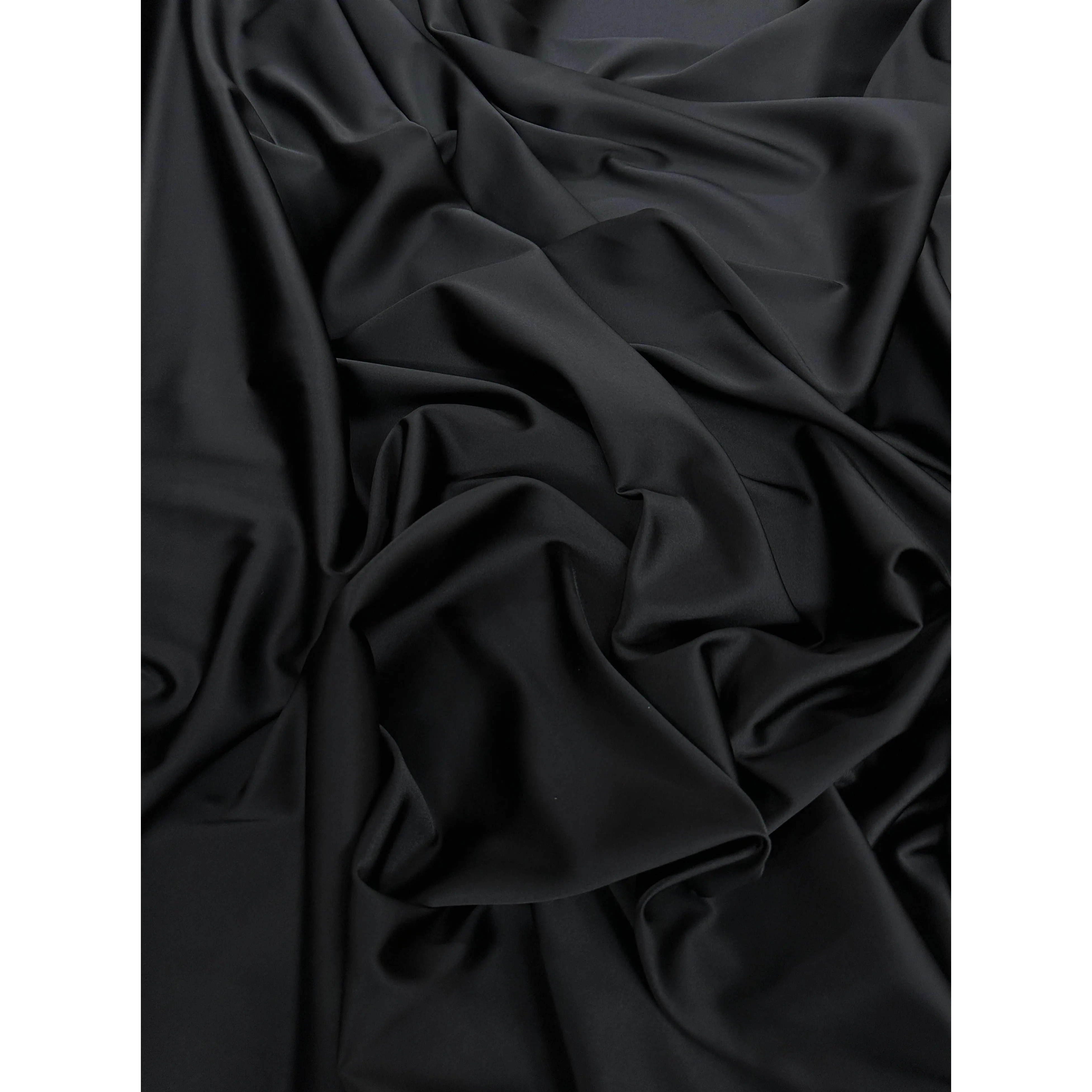 Possessing plenty of timeless style, this Luxurious Stretch Satin is sure to make grandly graceful garments. This color provides exquisite elegance throughout both the pebbled crepe backing and the shiny satin face. Airy and medium weight with a bouncy drape, dazzle in expertly made pants, tulip skirts, and mermaid gowns, dresses.