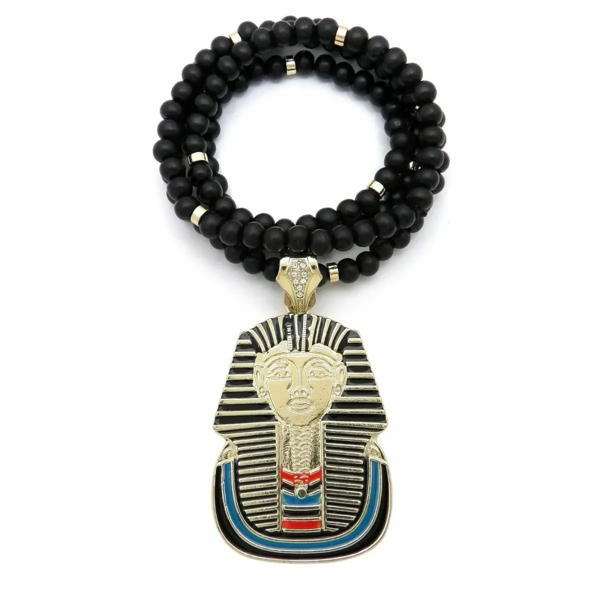 The Hip Hop Egyptian Pharaoh King Tut Pendant & 8mm 36" Black Wooden Bling Necklace comes in one pack per quantity. Elevate your fashion game with this stylish accessory today! 🎁