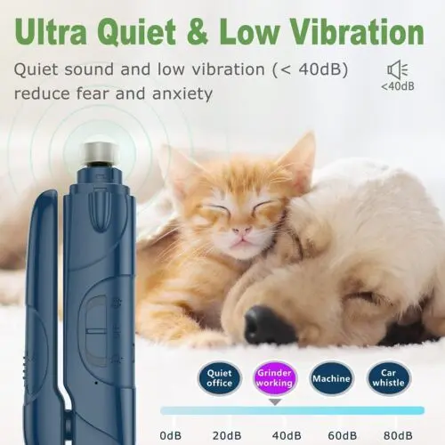 ·【Low Noise & Nail Collection Box】The Dog Nail Grinder is equipped high-quality motor, which can achieve fast rotation and low vibration (< 40dB). It helps to reduce your pet's fear, anxiety and aversion to the nail grinder, making the trimming easier. A nail storage box of the Cat claw Trimmer can prevent the nails scattering. Meanwhile, it's easy to clean.