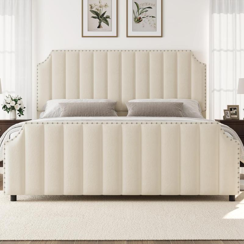 · 【Tall, Luxurious Headboard & Footboard】Features an impressive 50.2 in headboard and 23.6 in footboard with vertical channel tufting and elegant nailhead trim, adding a sophisticated and regal look to any bedroom.