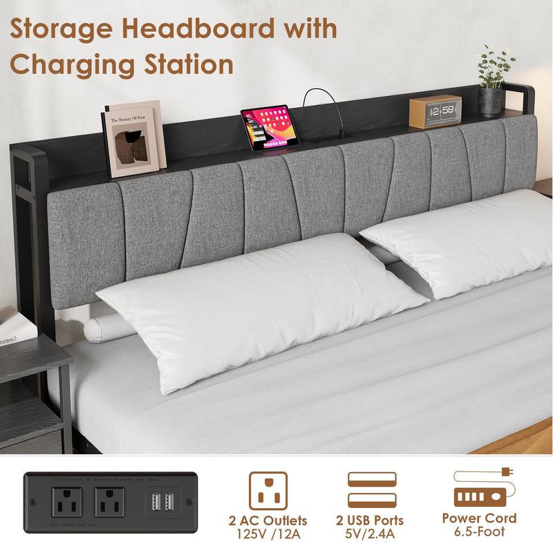 · HEADBOARD WITH CHARGING STATION - A charging station with multiple ports allows you to charge several devices at the same time, which is especially useful for multiple users, you can charge smart phones, tablets and e-readers when on the bed. What's more, a built-in charging station minimizes visible cords and cables, helping to maintain a neat and aesthetic look in your bedroom