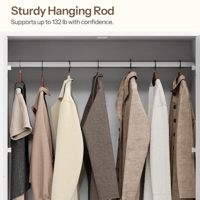 ·Sturdy Construction: Made of HDF and particleboard, this wardrobe cabinet features a stable base for lasting durability. Each open shelf supports up to 44 lbs, and the hanging rod holds up to 132 lbs, ensuring reliable performance in daily use