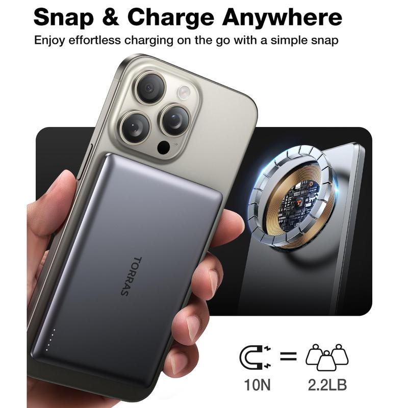 The magnetic design makes charging effortless—simply attach the power bank to your phone for automatic charging. It's intuitive, saving you time and hassle.