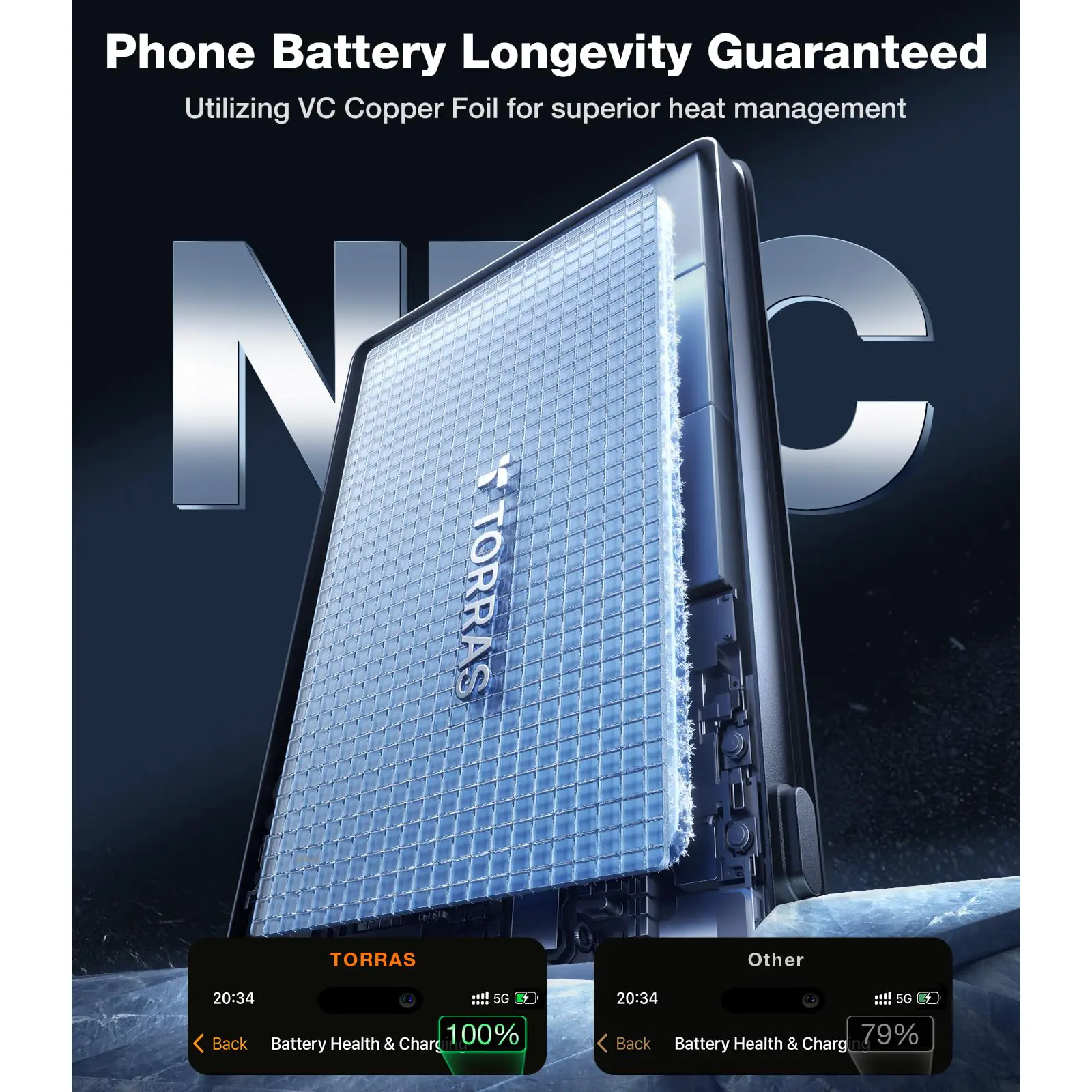 Built with Tesla's lithium-polymer battery technology, the power bank lasts over 500 charges without aging over 3 years. Advanced safety features like NTC temperature control and overcharge protection ensure your device charges safely.
