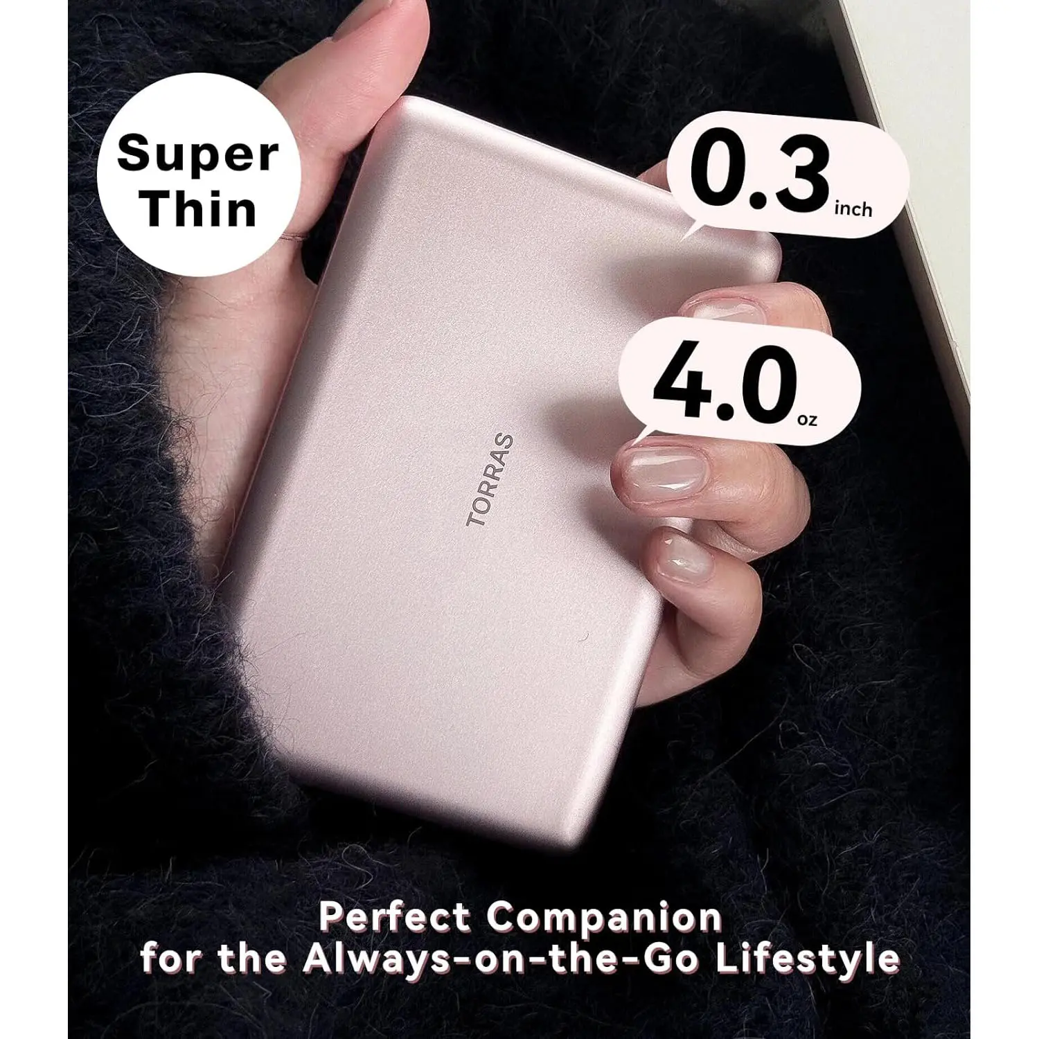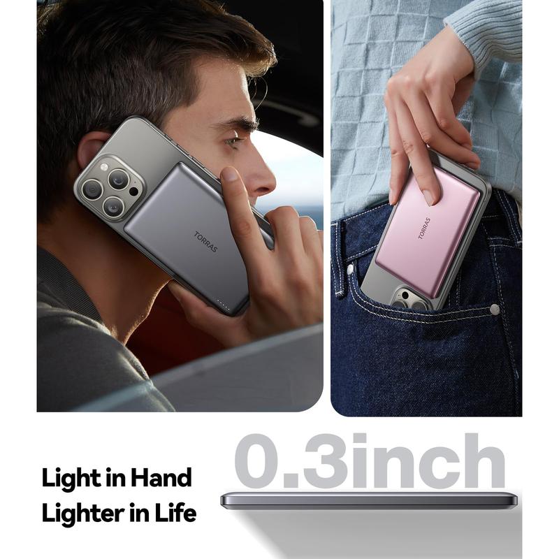 The MiniMag Power Bank is incredibly thin at just 0.3 inches, making it almost invisible when attached to your phone. It's lightweight and portable, fitting easily into your pocket or bag. Despite its size, it packs a powerful lithium-polymer battery that provides multiple charges for your phone.