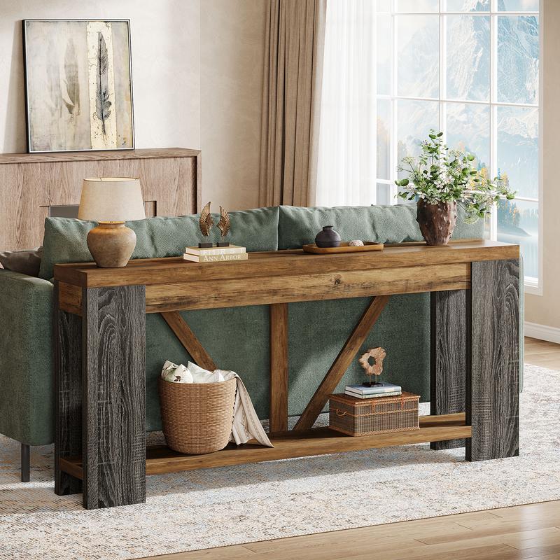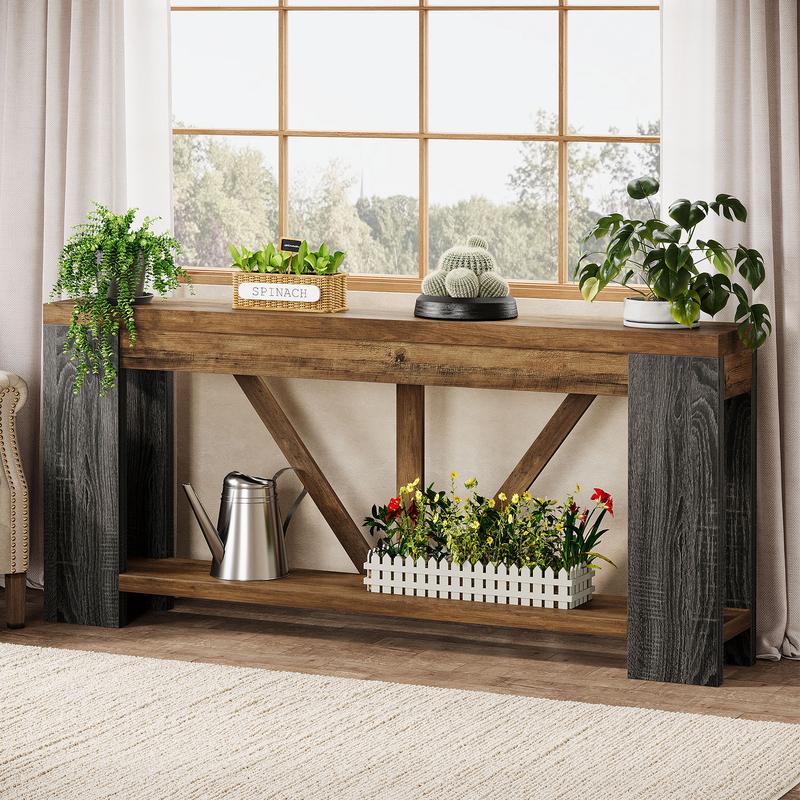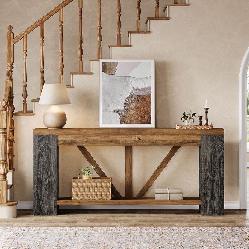 ·Farmhouse Aesthetic : Featuring wood-grain veneer and bold geometric lines, this console table for entryway blends farmhouse warmth with modern flair, creating a cozy, welcoming vibe. Its timeless look pairs effortlessly with contemporary, rustic, or minimalist home décor styles