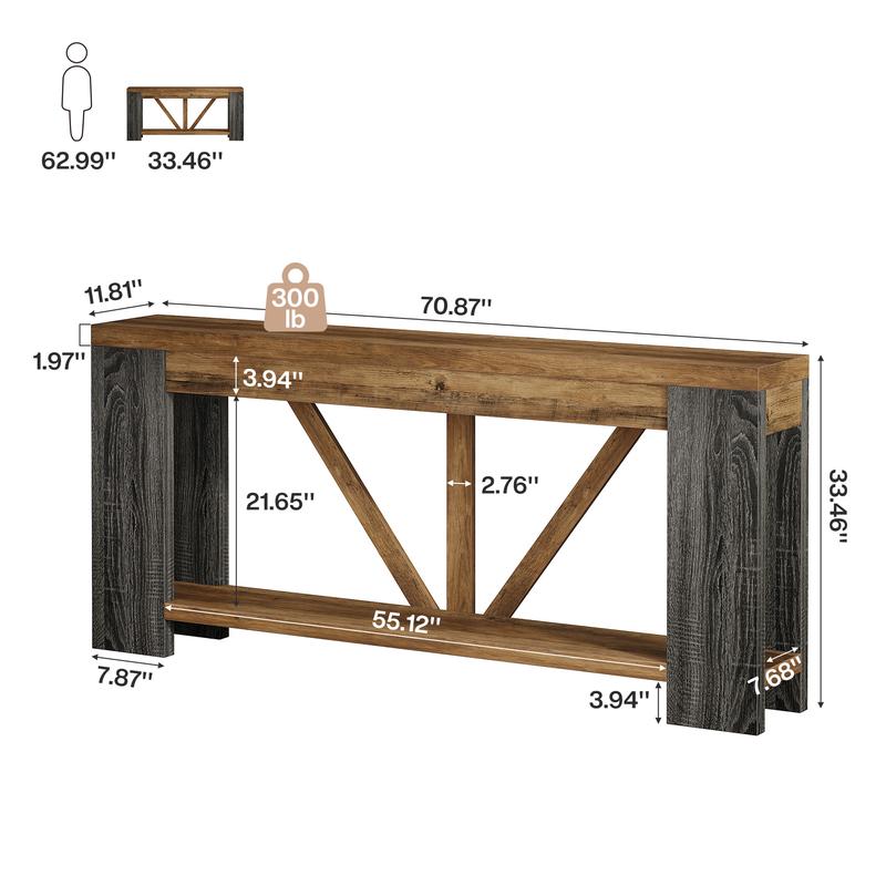 ·Space-Saving Design : Measuring 70.9"L × 11.8"D × 33.5"H, this narrow long console table fits perfectly behind sofas, along hallways, or in entryways without wasting floor space. Its slim profile maximizes style while keeping walkways open and clutter-free