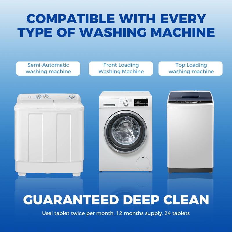 【Long-Lasting Use】Compact packaging. Ready to use anytime. Compared to tablets or liquid cleaners that use up quickly, BUBCLEAN 24 tablets washer cleaner contains a year's supply.