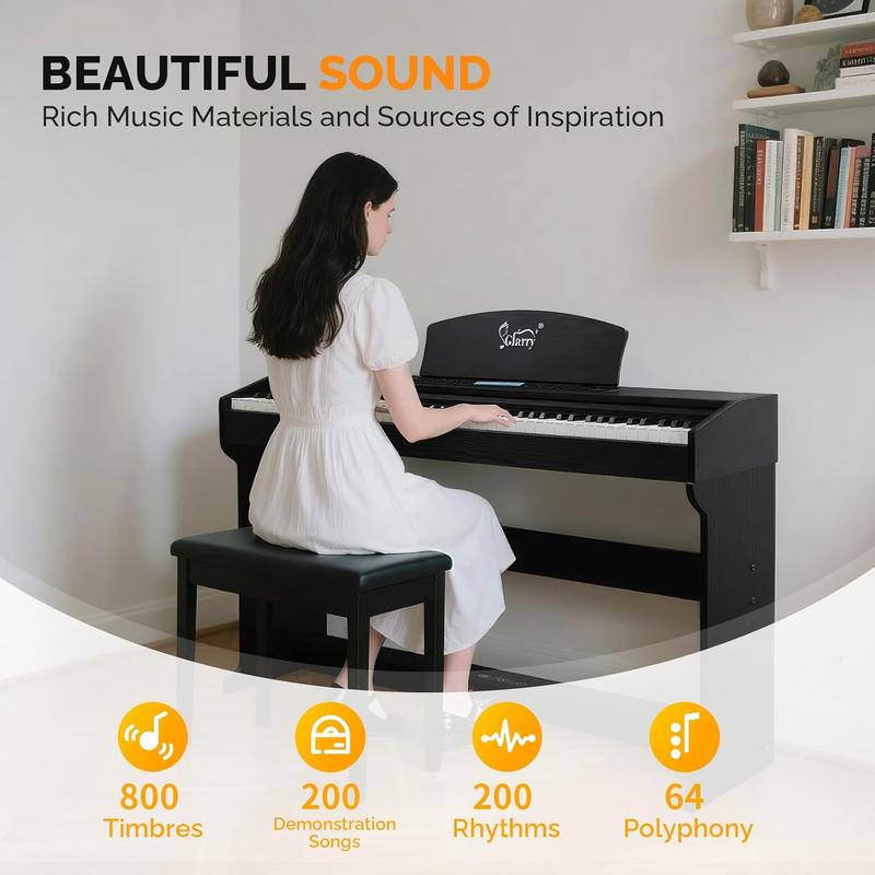 Heavy Hammer Keyboard:Designed with the high quality heavy hammer keyboard, is able to control different volume and timbre changes based on different intensity inputs, which makes the performance more vivid and expressive. These different changes help beginners adapt and progress faster. The durable keyboard can also be used for a longer period of time.